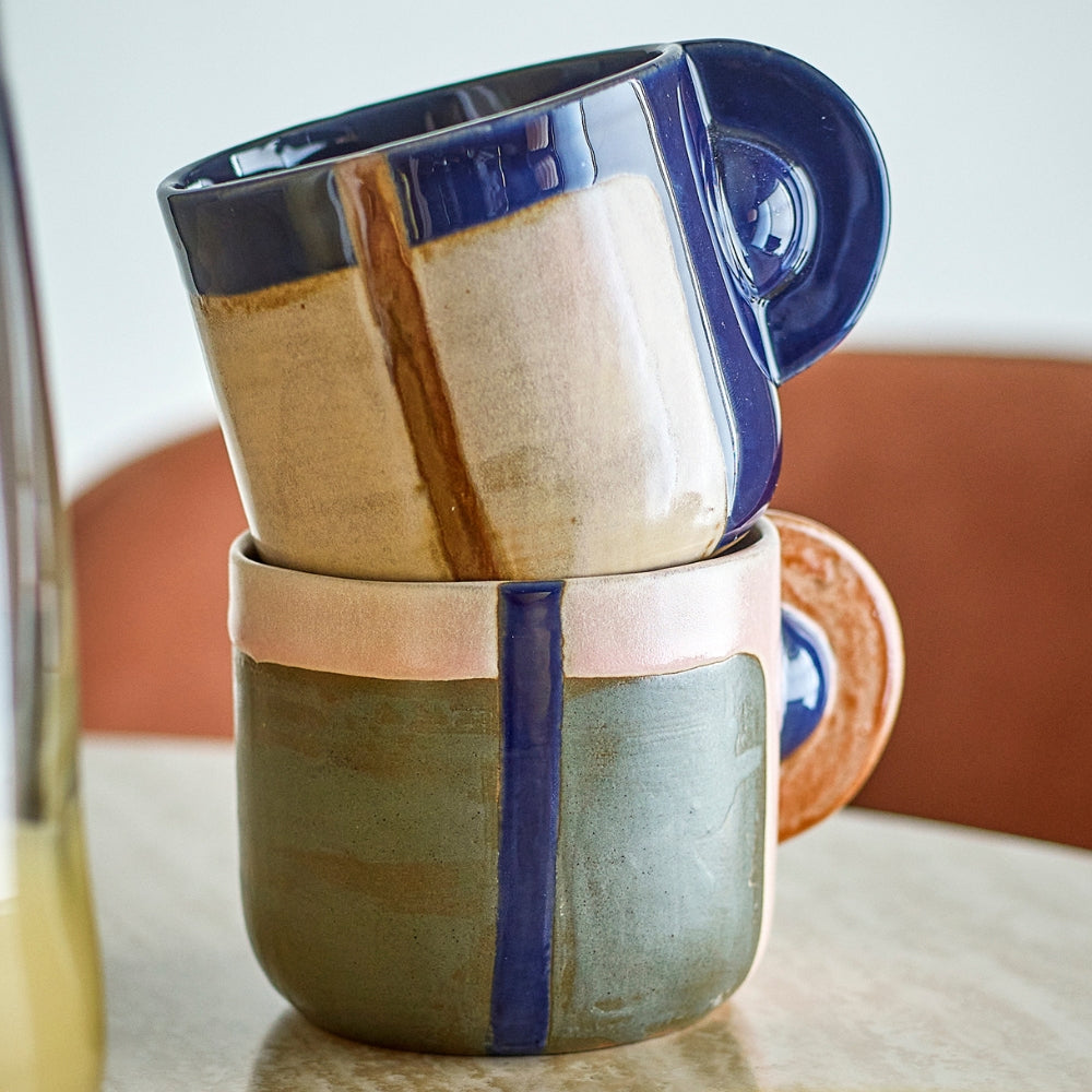 Bloomingville kafijas krūzes no Bolivia kolekcijas ir stilīgs papildinājums ikdienas rituāliem, apvienojot modernu dizainu ar amatniecisku izsmalcinātību.