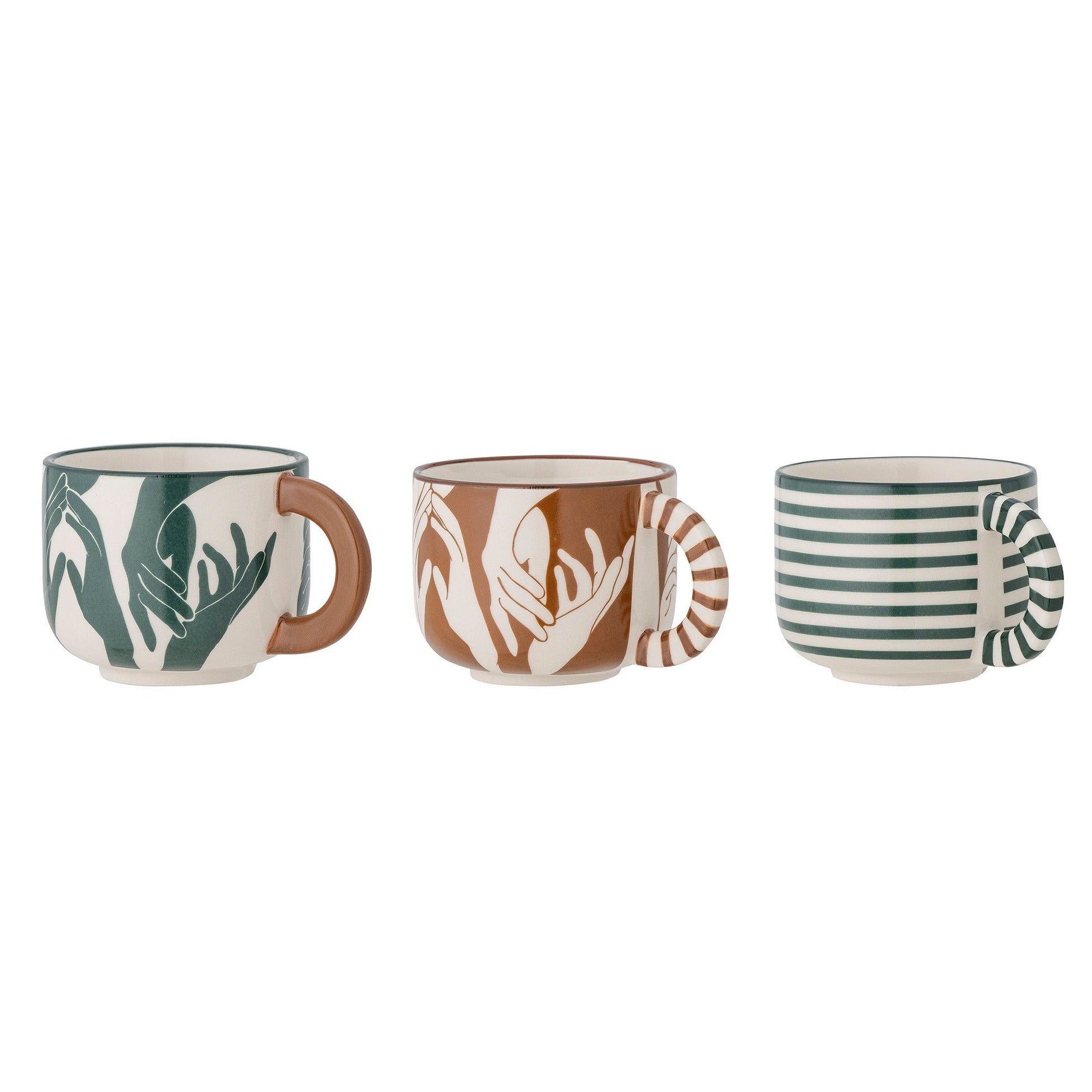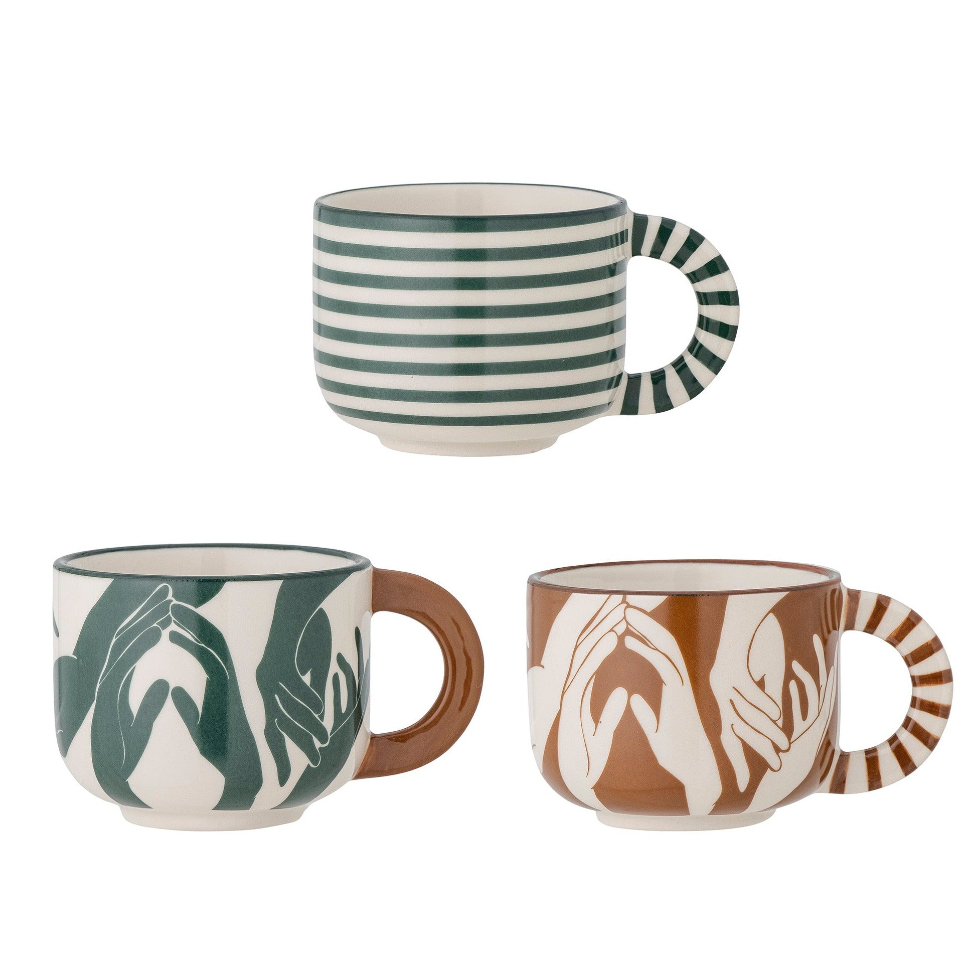 Bloomingville unikālais trīs Carim keramikas tējas un kafijas krūžu komplekts ir skaists papildinājums jebkuram galda klājumam.