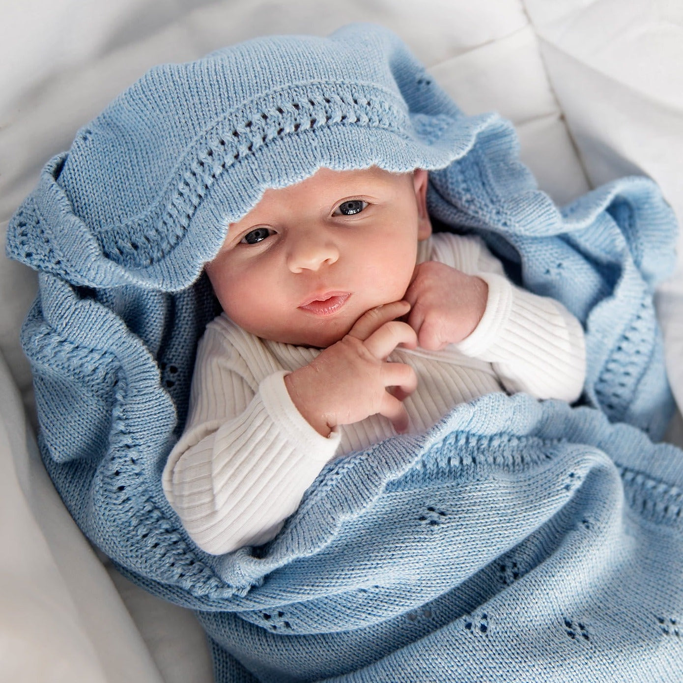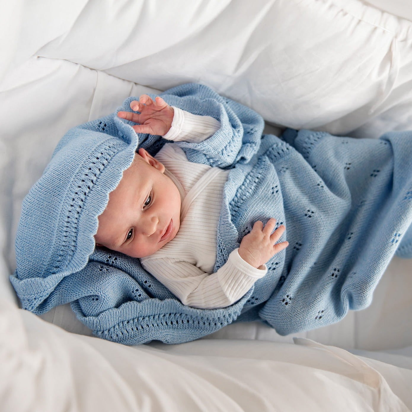 Skaista atvērta bērnu sega zils margrietiņas krāsā no Lullalove.
