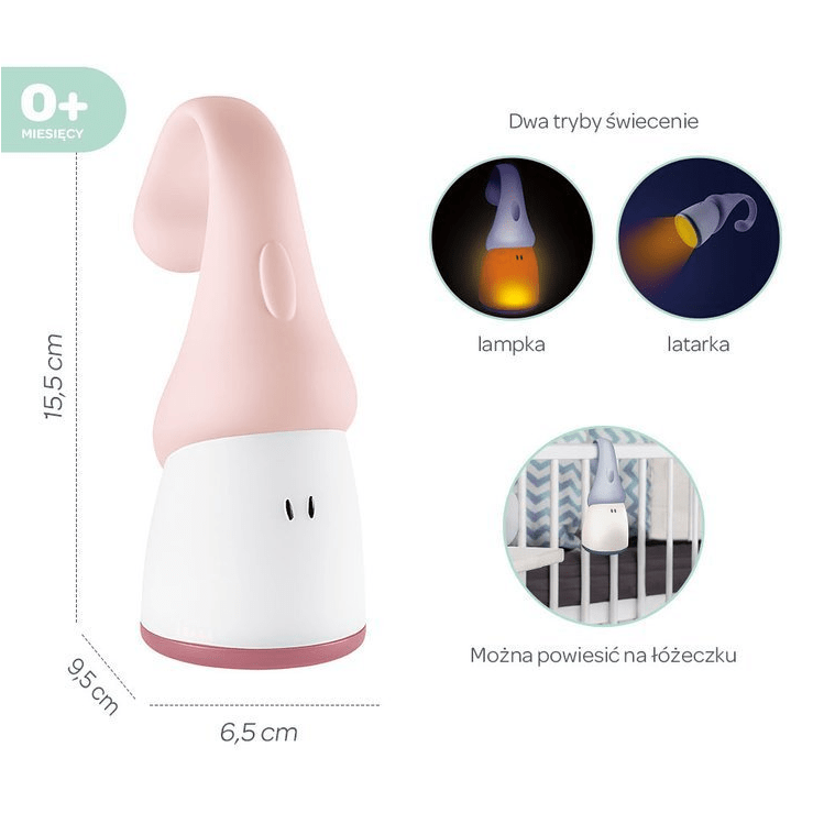 LED lampa izstaro maigu gaismu, kas nodrošinās jūsu bērna drošību pat nakts laikā (to var, piemēram, pakarināt pie gultiņas).