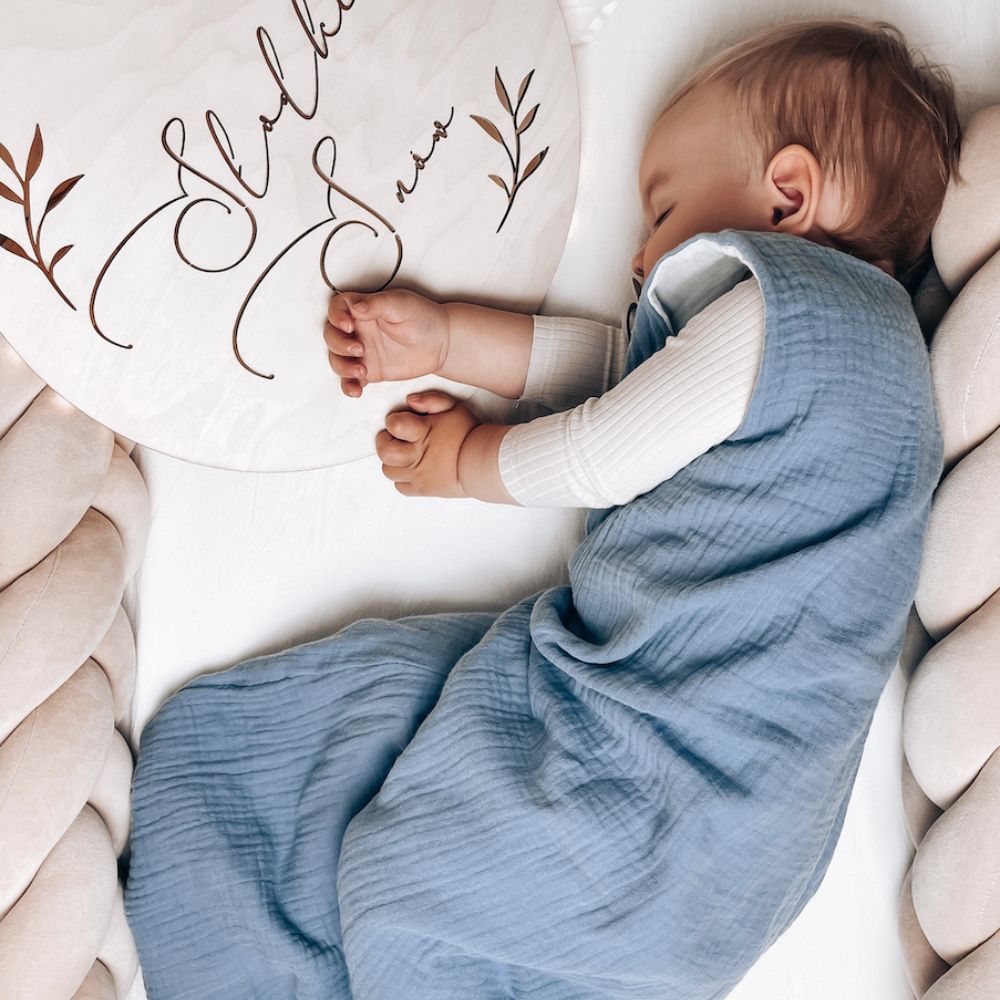 Šis guļammaiss ir izgatavots no augstas kvalitātes mīksta muslīna, kas ir maigs pret bērna ādu un nodrošina lielisku gaisa cirkulāciju.