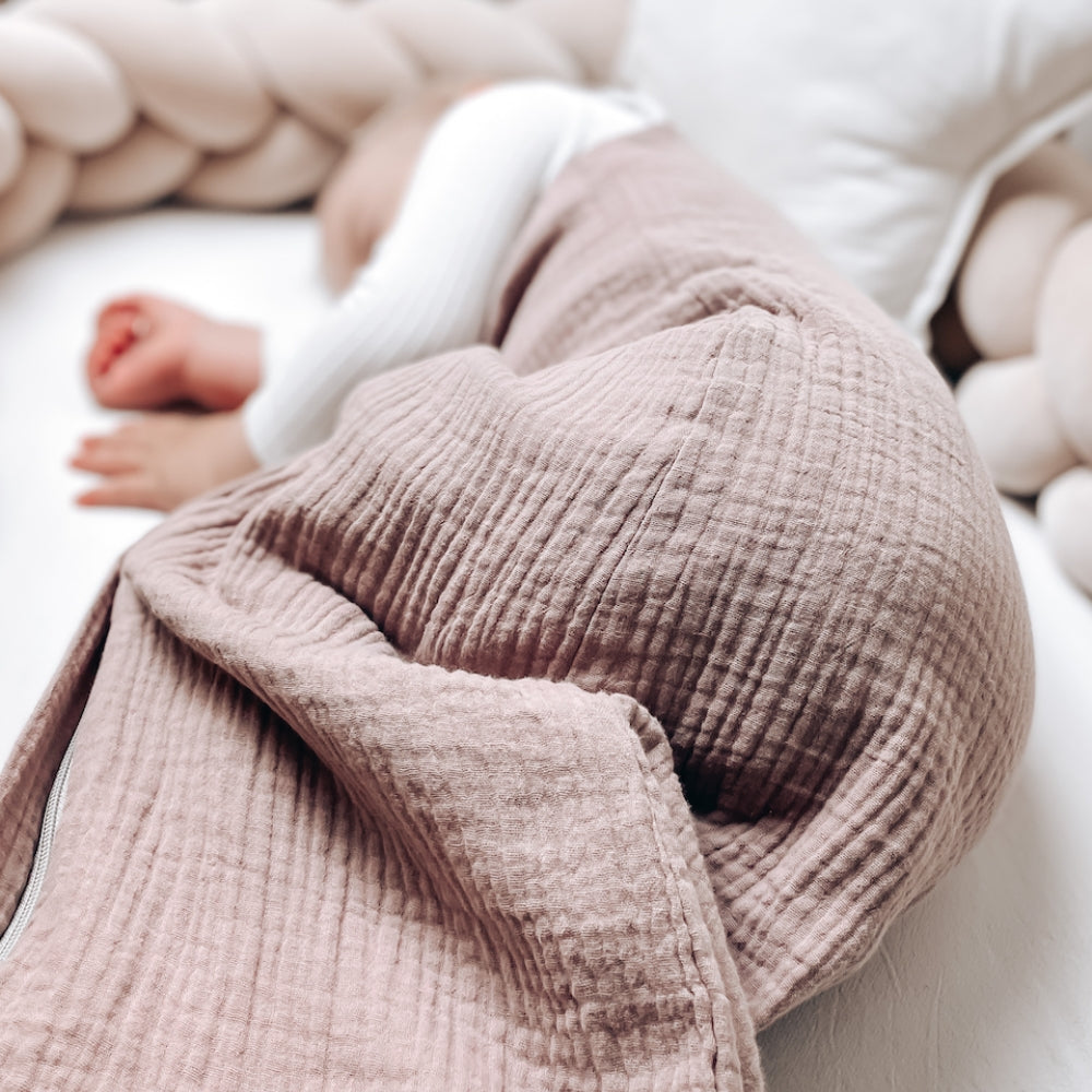 Šis guļammaiss ir izgatavots no augstas kvalitātes mīksta muslīna, kas ir maigs pret bērna ādu un nodrošina lielisku gaisa cirkulāciju.