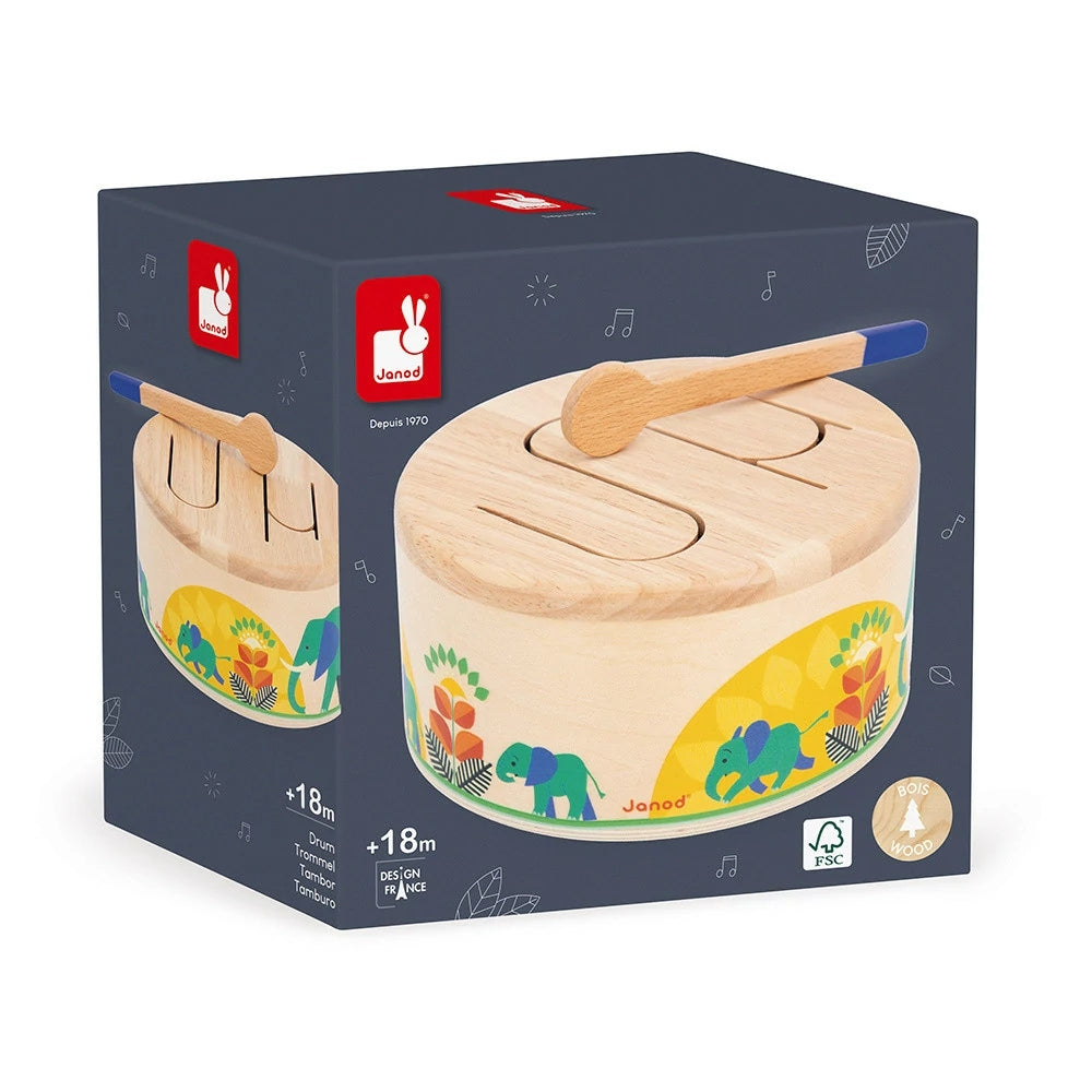 Janod Gioia bungas ir ideāls pirmais mūzikas instruments bērniem no 18 mēnešu vecuma.