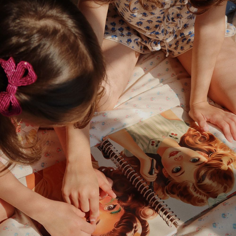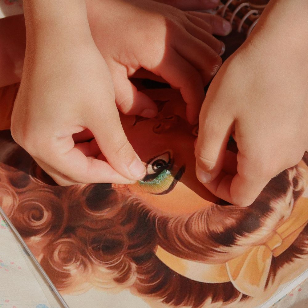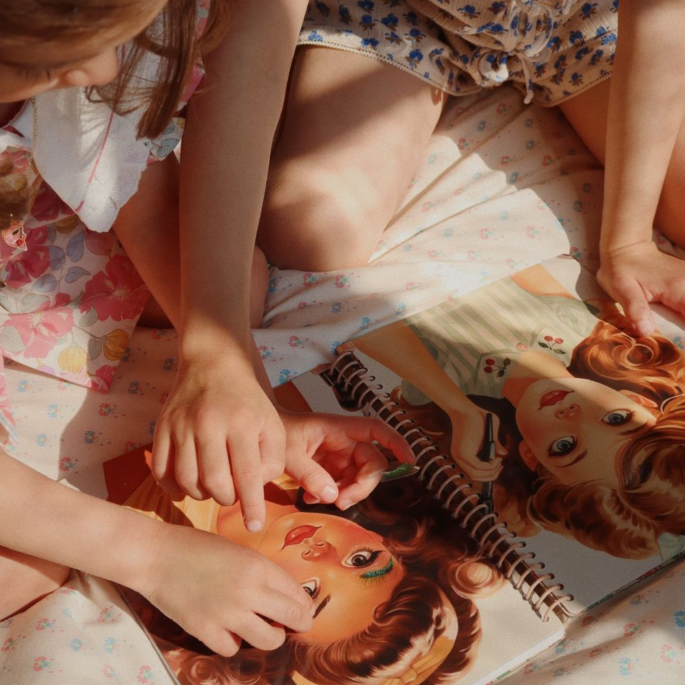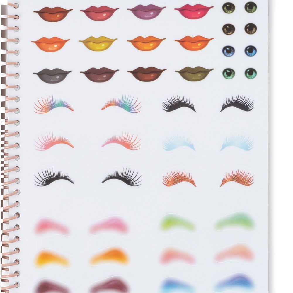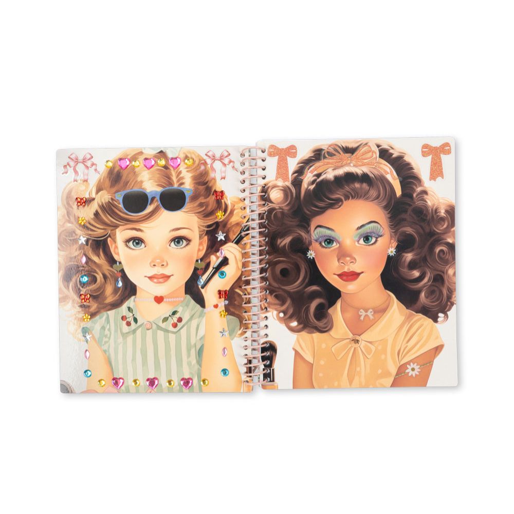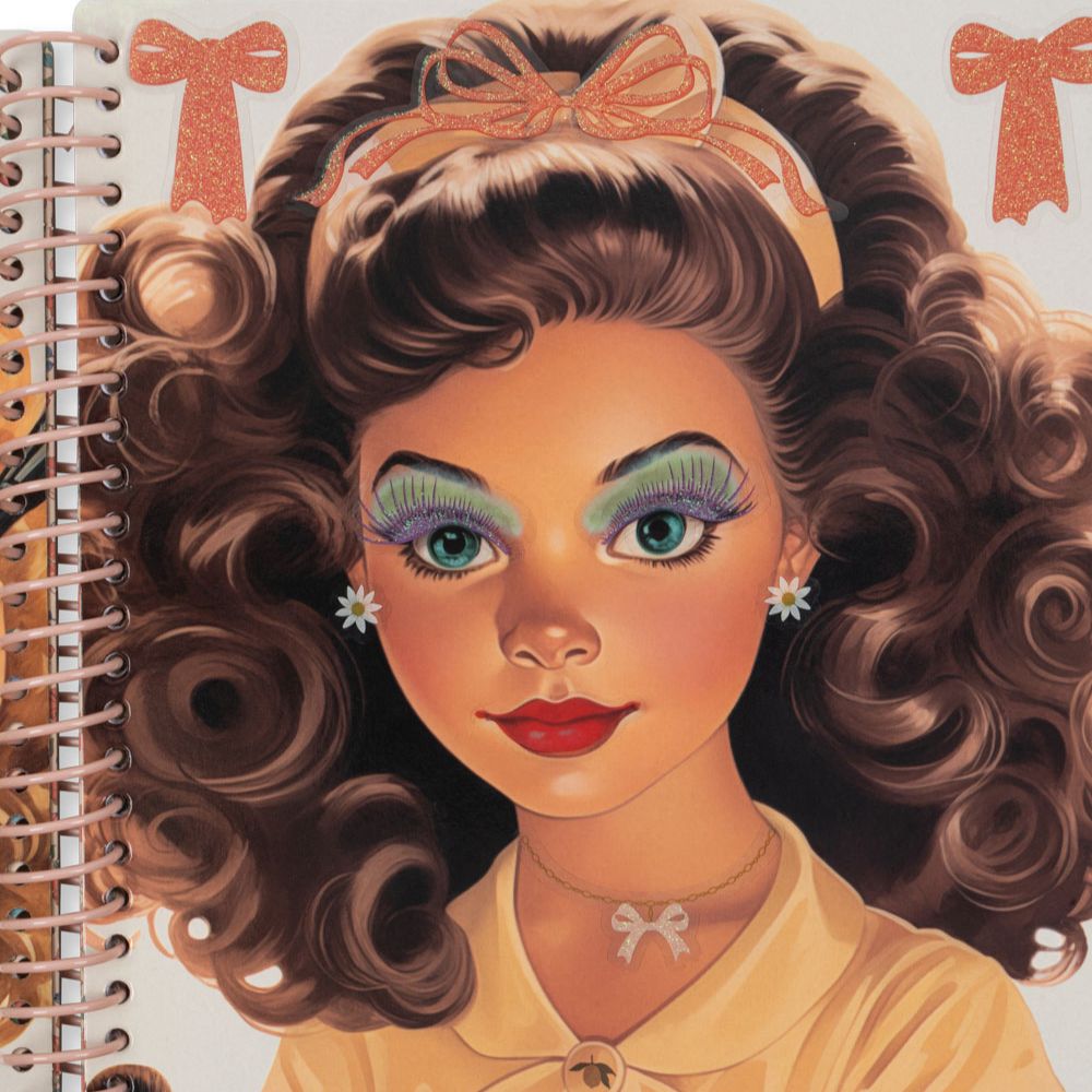 Grāmatā atradīsi vintage stila sejas, kuras gaida, lai tās izrotātu ar uzacīm, skropstām, saulesbrillēm un daudziem citiem aksesuāriem.