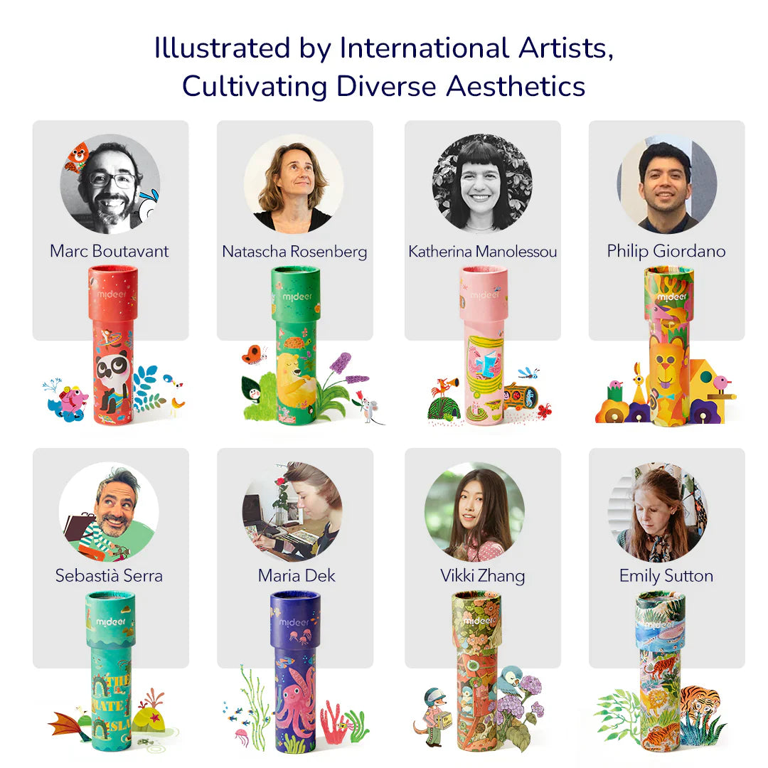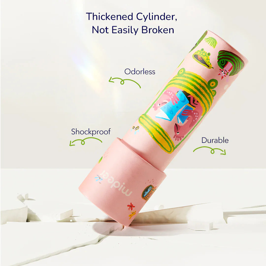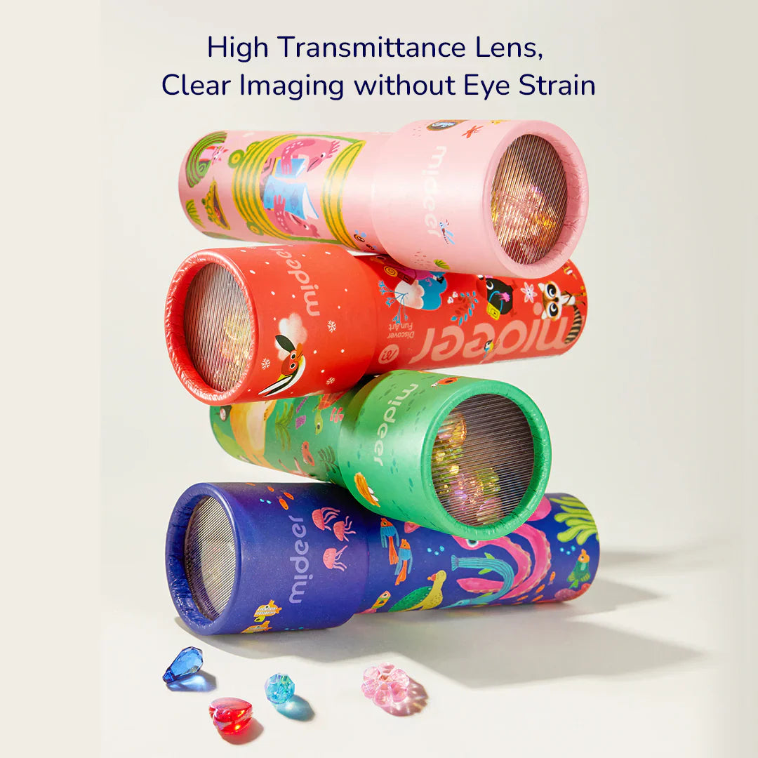 Pateicoties kompaktajam izmēram un vieglajam dizainam, Mideer bērnu kaleidoskops perfekti iederas mazās rociņās, un tā izturīgā izgatavošana garantē ilgu lietošanas prieku.
