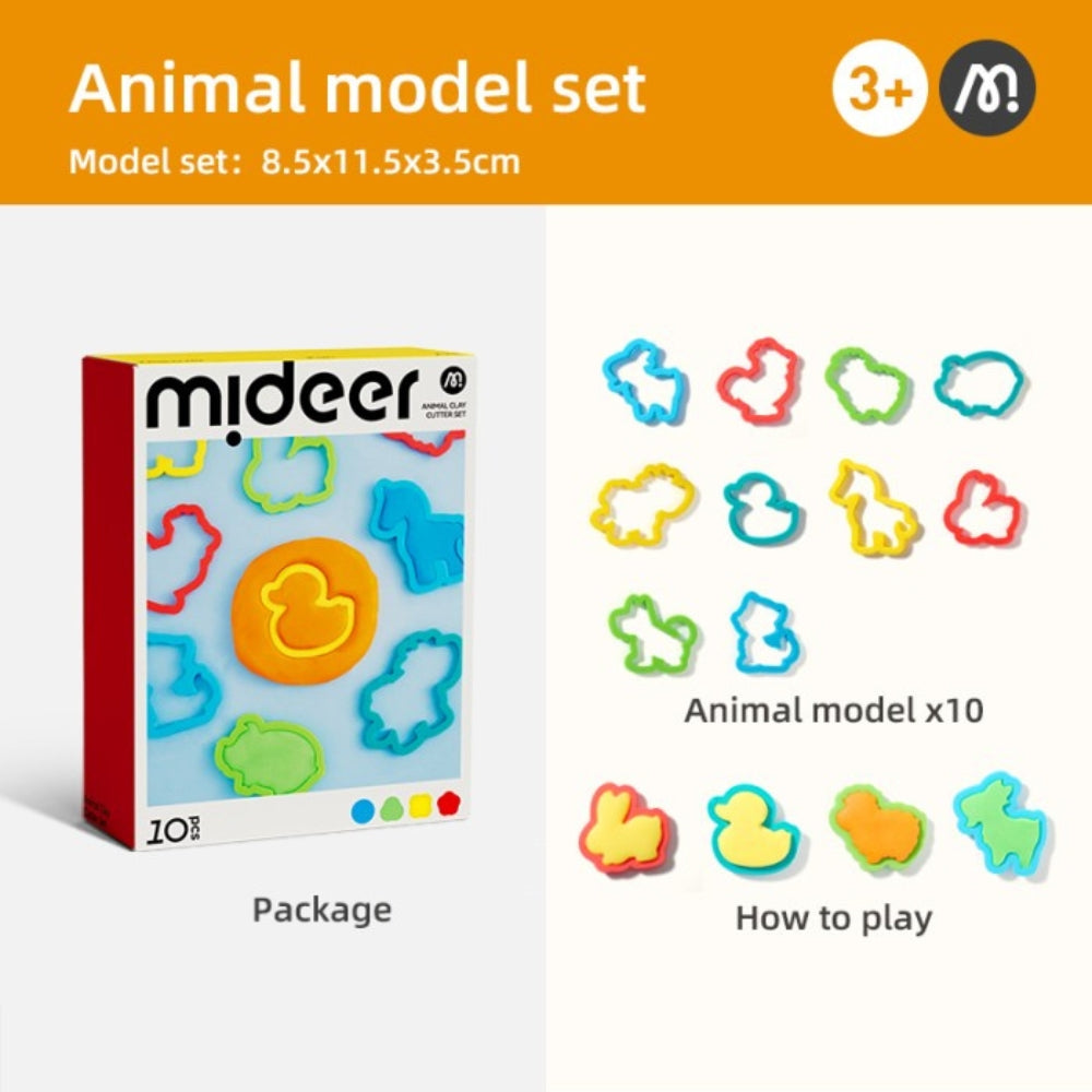 Komplektā ir 10 formiņas dzīvnieku formā, kas ļauj no mīklas veidot unikālas figūras un ainas.