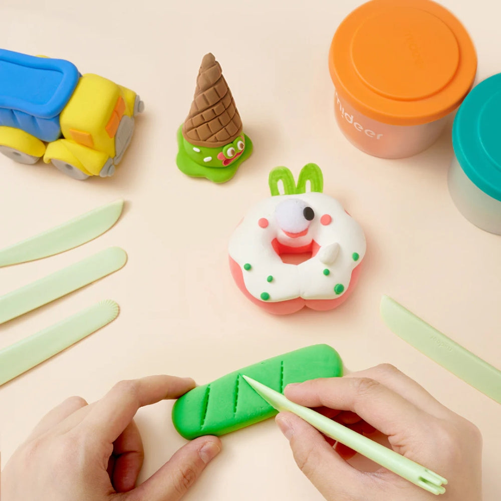 Komplektā ir iekļauti modelēšanas rīki – lāpstiņas un droši naži ar izliektiem galiem –, lai padarītu spēli vēl daudzveidīgāku.
