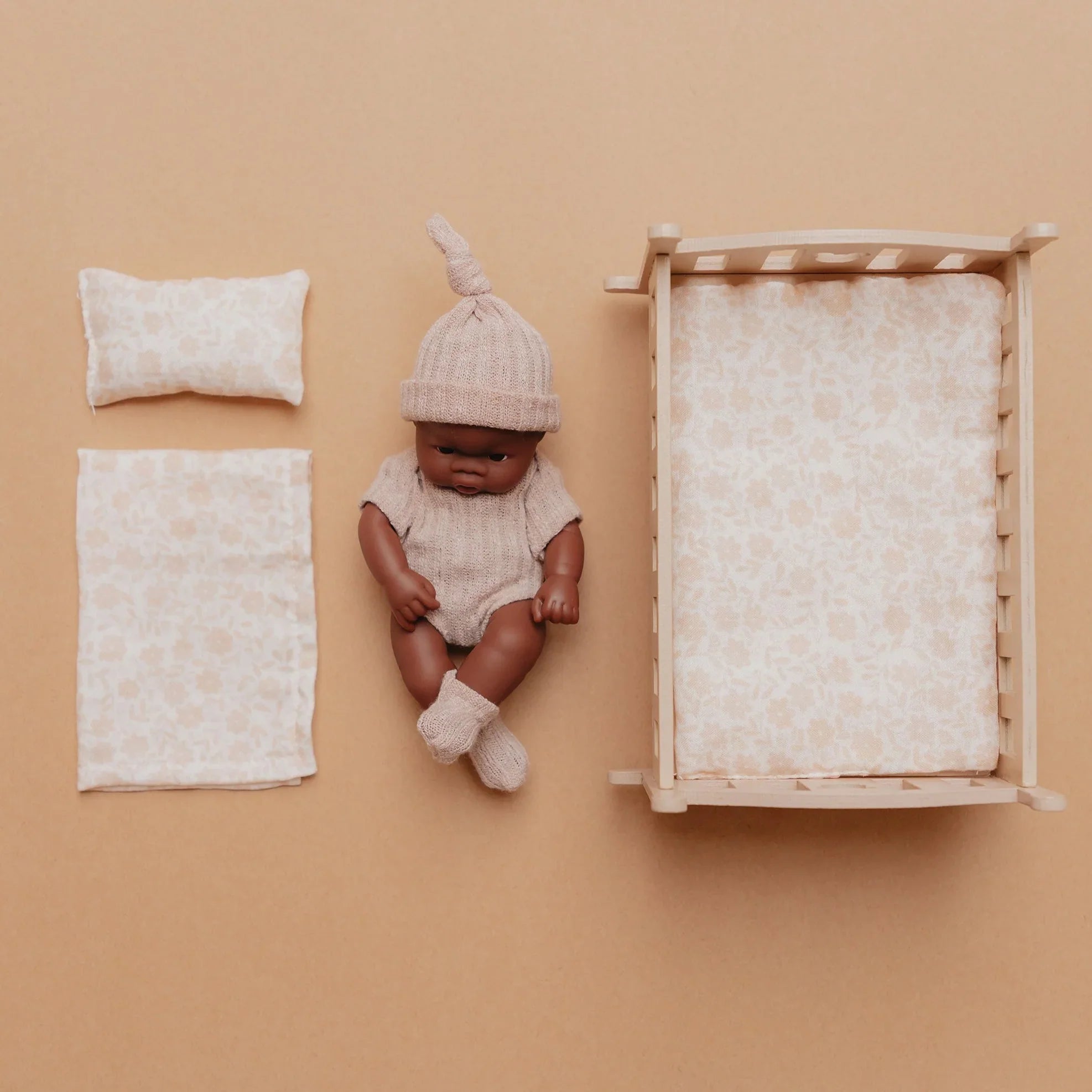 Šūpulītim ir gultas veļas komplekts, kas sastāv no matrača, spilvena un palaga, lai nodrošinātu katras Lupitas komfortu un ērtības miega laikā.
