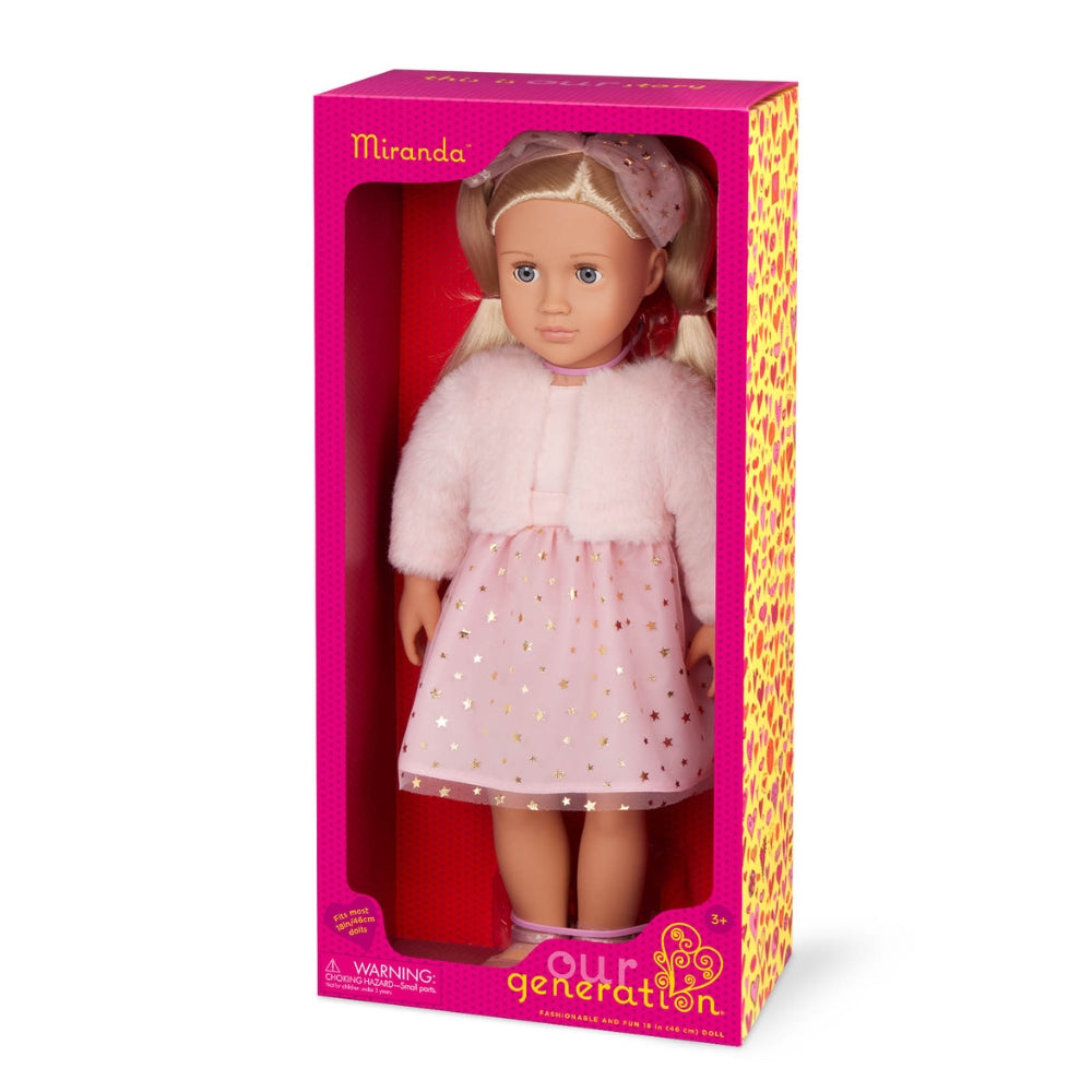 OurGeneration Miranda lelle ir eleganta izvēle bērniem, kuri mīl modi un lomu spēles.