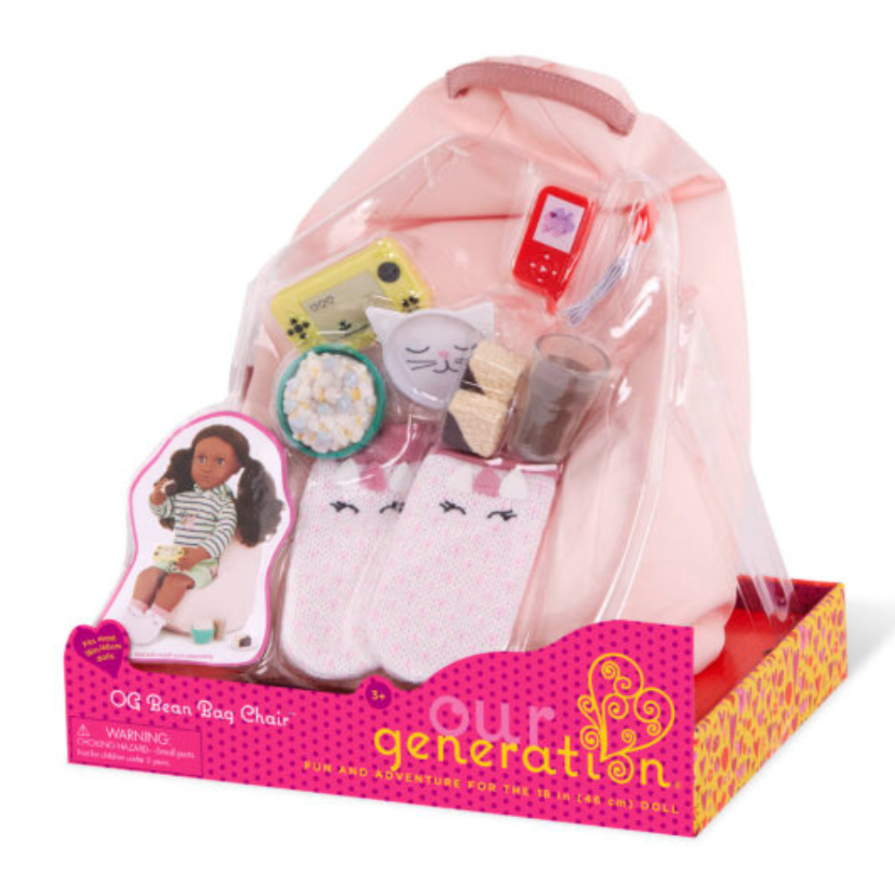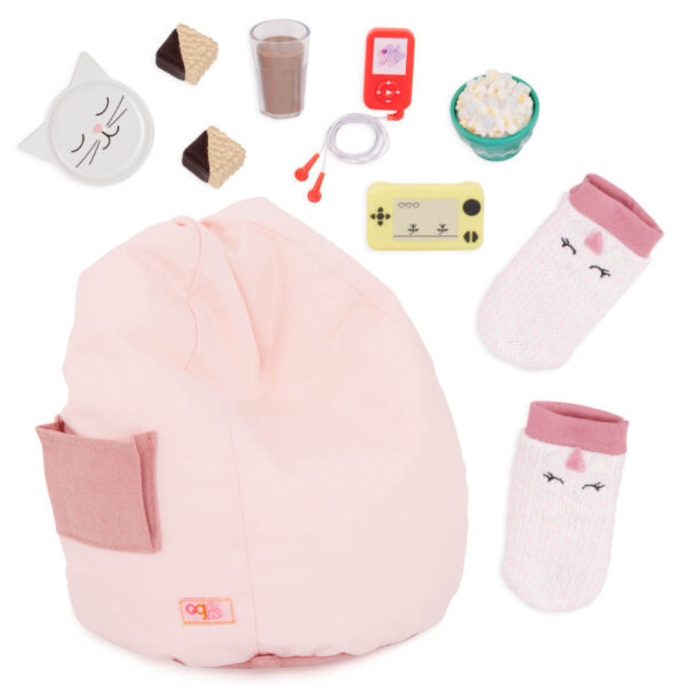 Sēžamais maiss ir piemērots klusai lasīšanai, mūzikas klausīšanai vai atpūtai pēc intensīvas spēles – tieši kā “pieaugušo” viesistabā. Piemērots Our Generation lellēm, kuru augstums ir 46 cm.