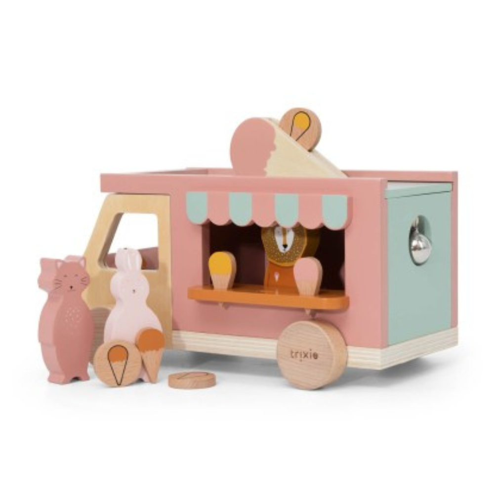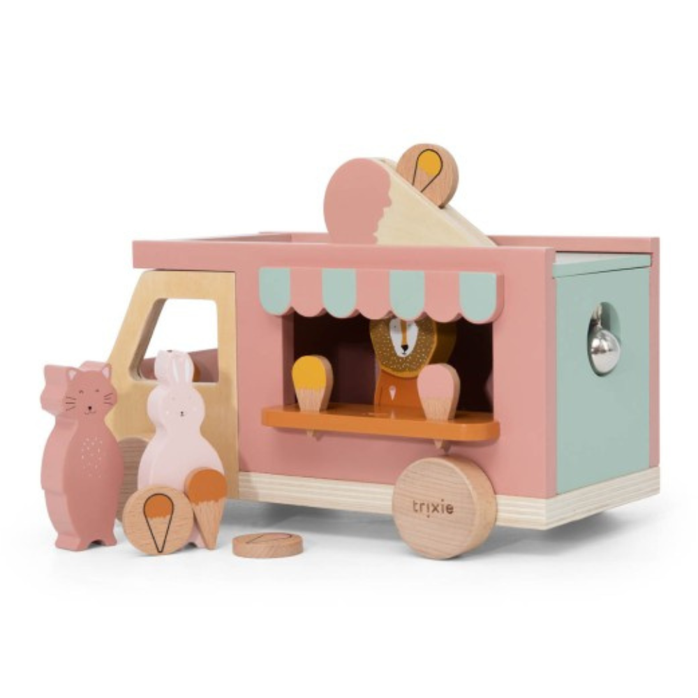 Koka furgons ir gatavs ikdienas radošiem „saldējuma” piedzīvojumiem. Šī Trixie rotaļlieta lieliski iederēsies mājas teātros, veikalos un ainas ar jūsu mīļākajiem varoņiem.