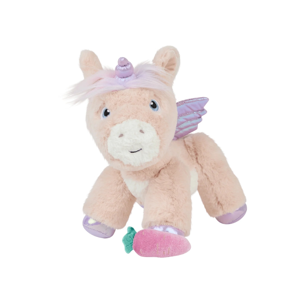 Rainbow akcenti uz viņa nagiem un spārniem, samta ausis un mīksta, plīša krēpes un aste padara viņu vēl maģiskāku.
