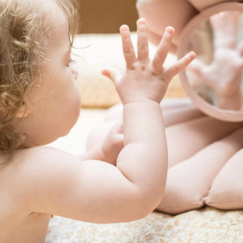 Skaistā rozā bērnu spoguļrotaļlieta būs ideāli piemērota kakla muskuļu trenēšanai no That's Mine.