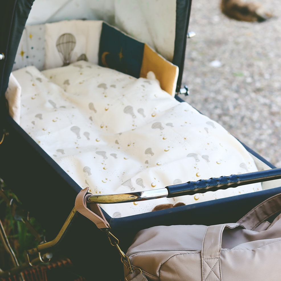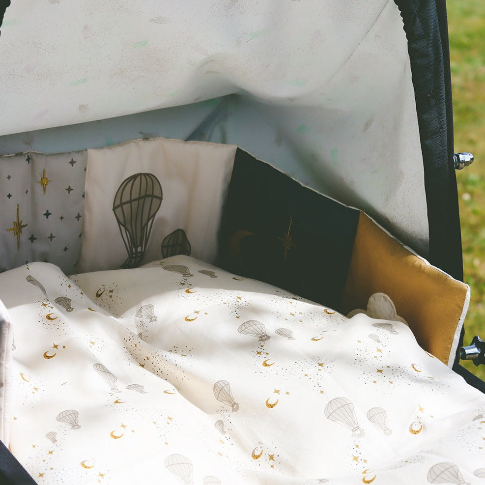 Tā ir izgatavota no 100% organiskas kokvilnas auduma, kas to padara drošu maziem bērniem.