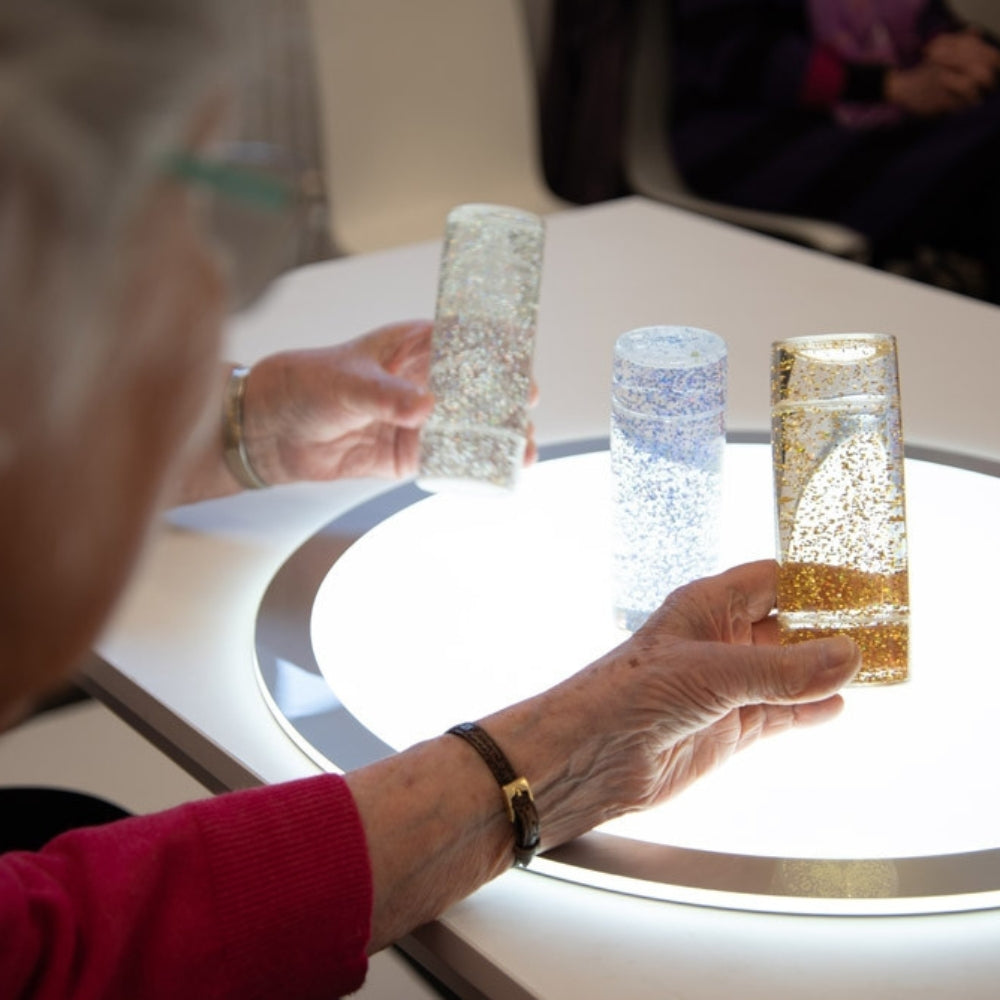 Kad cilindrus apgriež otrādi vai sakrata, tajos veidojas virpuļojoša mirdzuma vētra, kas pēc tam palēninās, radot valdzinošu un aizraujošu mierīga koncentrēšanās avotu.