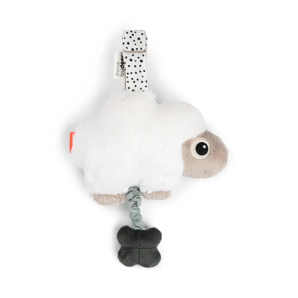 Mīlīgais dizains aitas Sheepy veidā, ar vienu atvērtu un otru aizvērtu aci, piešķir rotaļlietai jautru noskaņu.