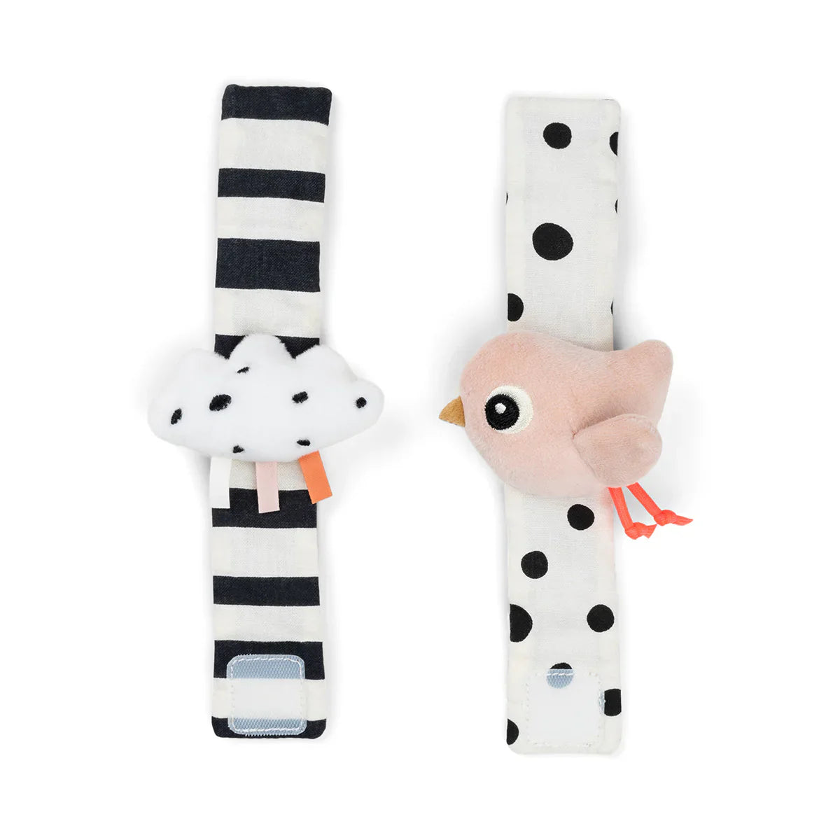 Šis zīdaiņu rokas vai kāju rotaļlietu komplekts no skaistās Happy Clouds kolekcijas ir ideāls veids, kā stimulēt zīdaiņu maņas un attīstīt ķermeņa apzināšanos.