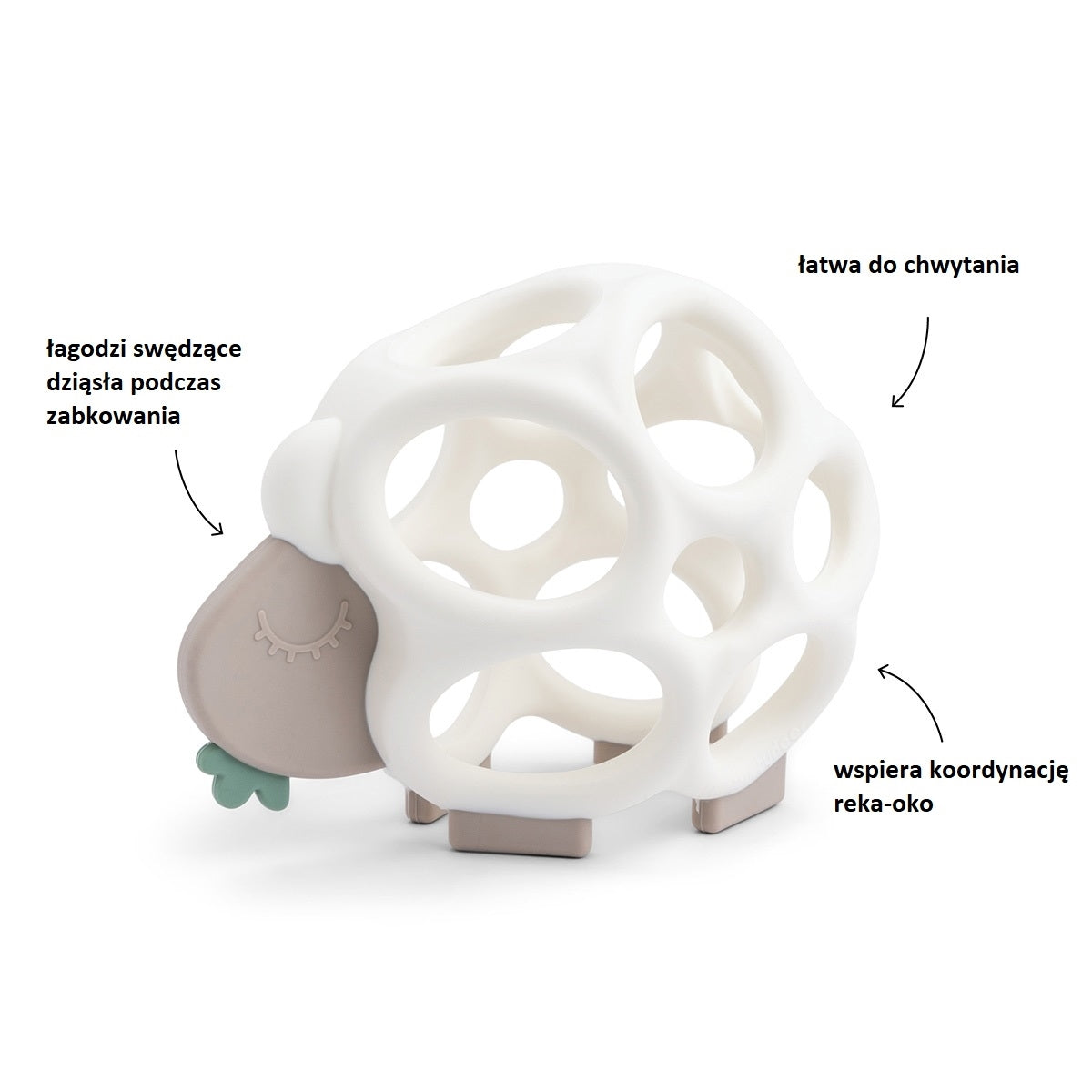 Done by deer Sheepy Teether ir paredzēts, lai nomierinātu niezošas smaganas zobu izaugšanas laikā.