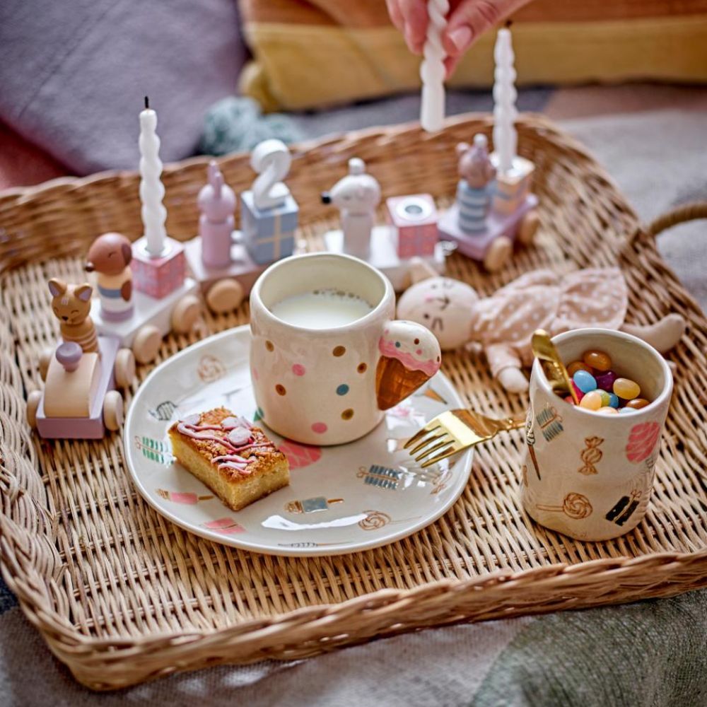 Bloomingville Sweets trauku komplekts bērniem ir ideāla izvēle jebkurai svinībai vai ikdienas maltītei.