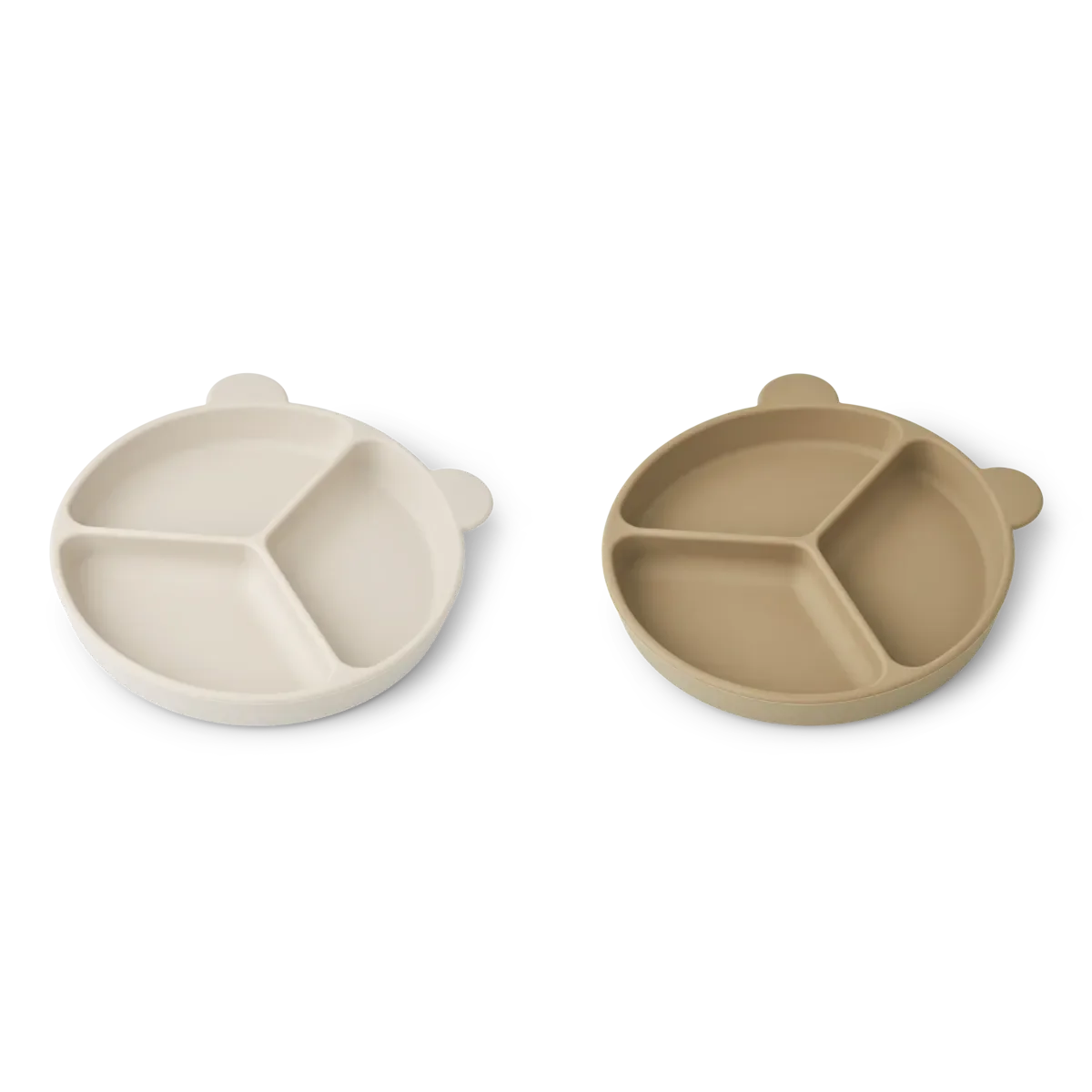 Liewood piesūcekņa šķīvim ir trīs atsevišķi nodalījumi, lai kopā ar pazīstamiem ēdieniem pasniegtu arī jaunus, un plānais silikona pamatne piestiprinās pie dažādām virsmām, lai bērns ēšanas laikā nevarētu pacelt vai apgāzt šķīvi.
