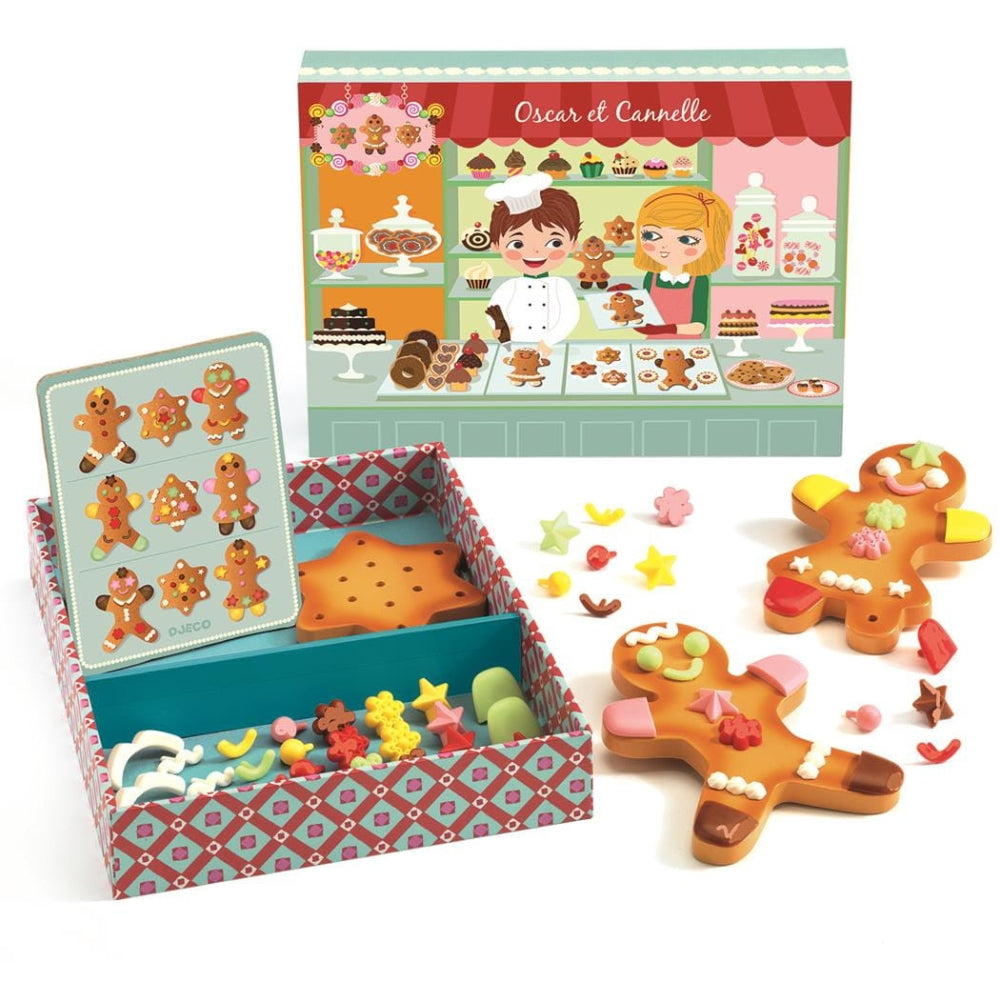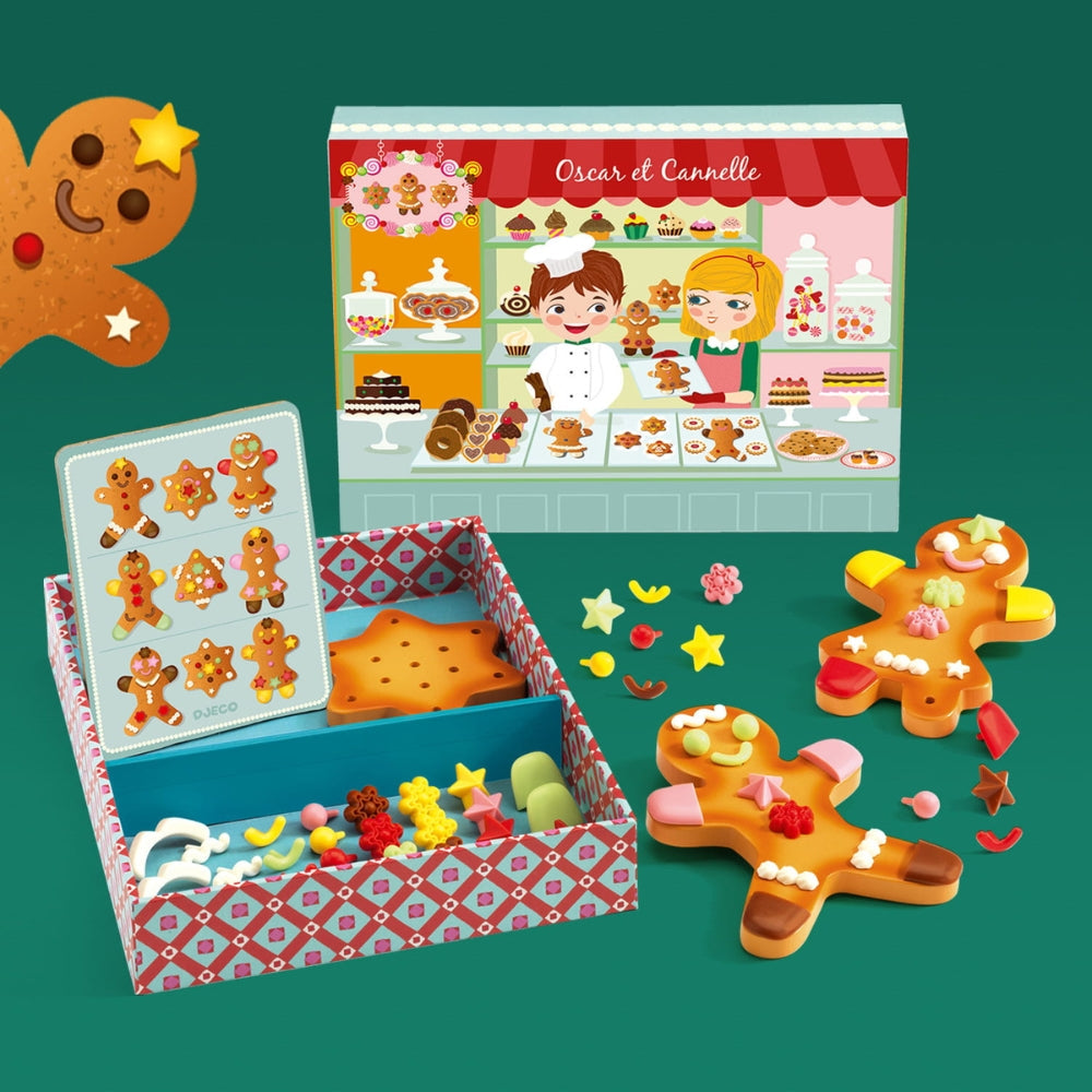 Šis Djeco radošais komplekts bērniem ir unikāls piedāvājums, kas iepazīstina mazos bērnus ar smaržīgo kanēļa cepumu un svētku spēļu pasauli.