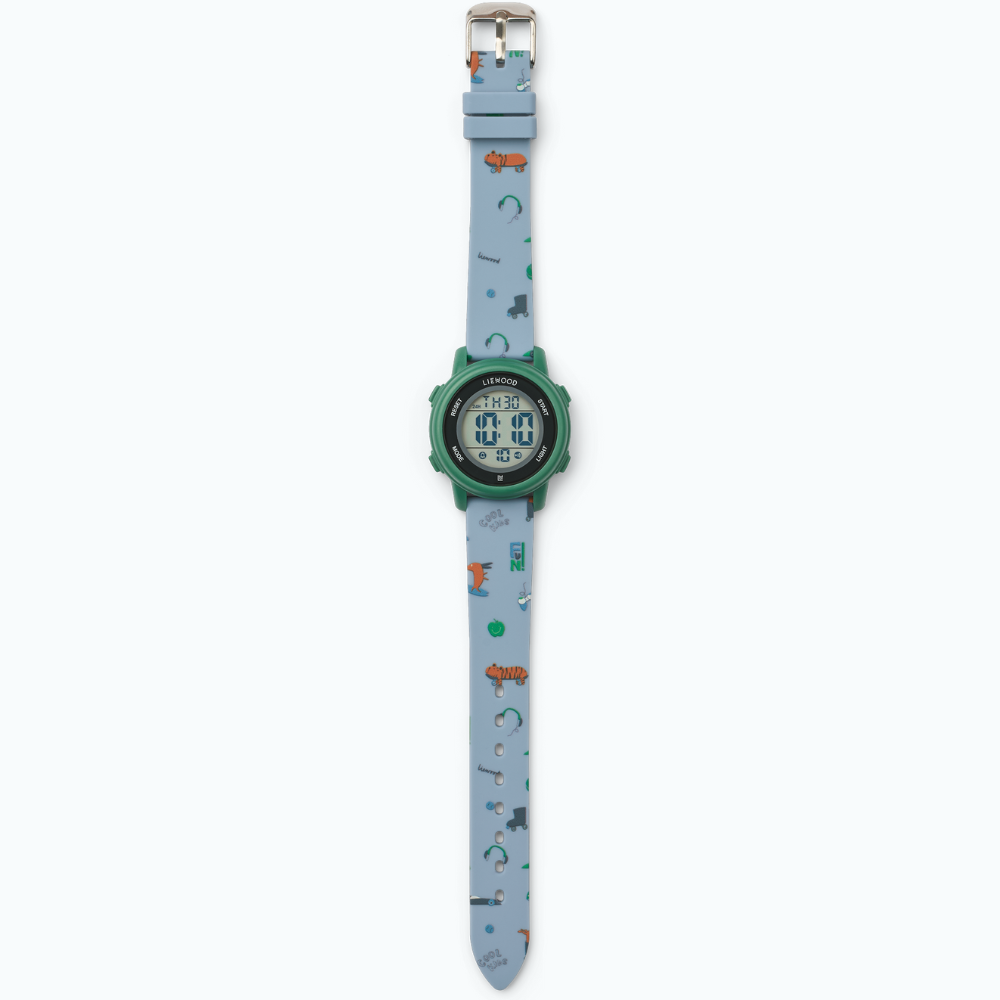 Liewood digitālais pulkstenis ar jautriem rakstiem un krāsām ir lielisks ikdienas aksesuārs vecākiem bērniem – ērts, viegls un gatavs skolas piedzīvojumiem.