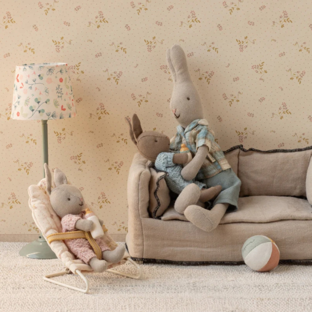 Maileg zaķis ir unikāls bērnu rotaļu un stāstu biedrs. Mīkstais zaķis ir izstrādāts tā, lai perfekti saderētu ar Maileg mikro izmēra aksesuāriem un lellu māju no tās pašas kolekcijas.