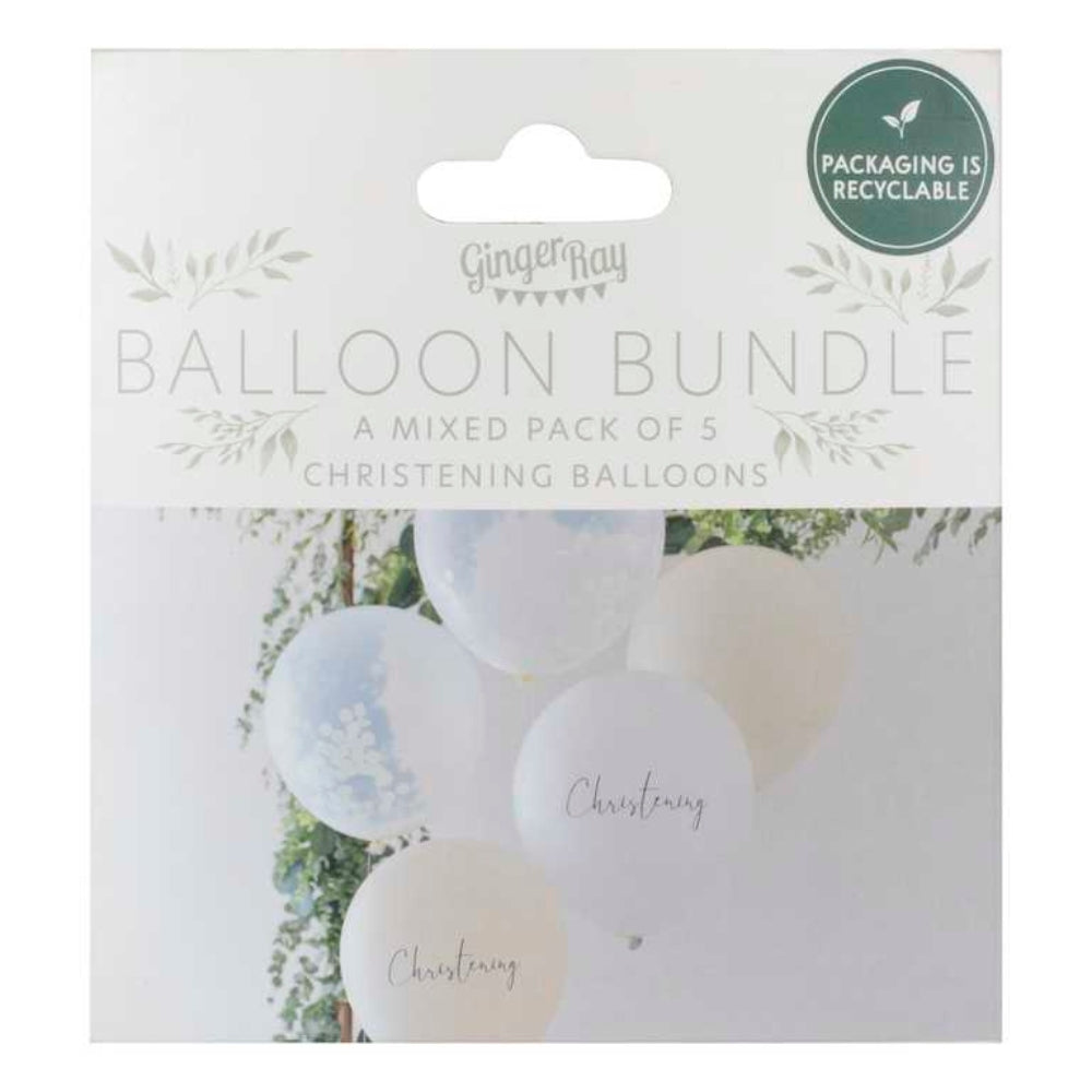 Apvienojiet šo skaisto balonu pušķi ar citiem skaistiem Gingerray kristību dekorācijām.