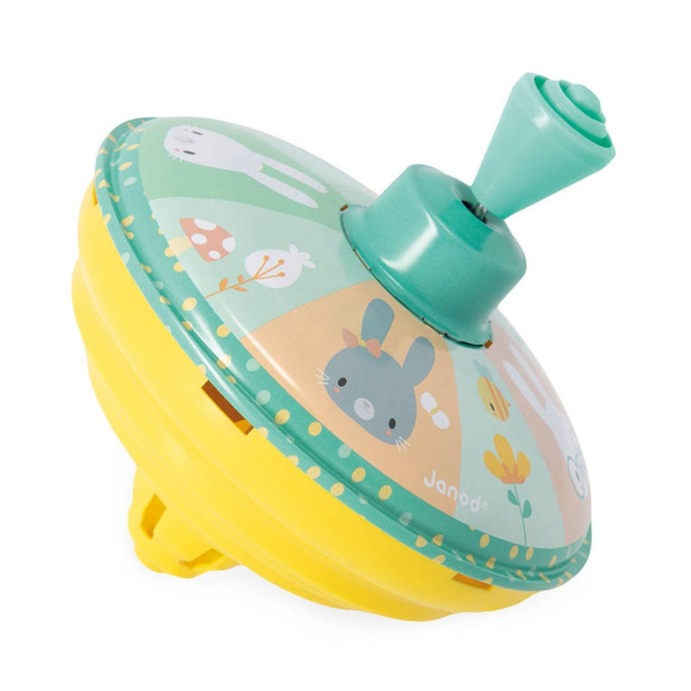 Janod ražota zaķa rotaļlieta spinner tīri dzeltenā krāsā.