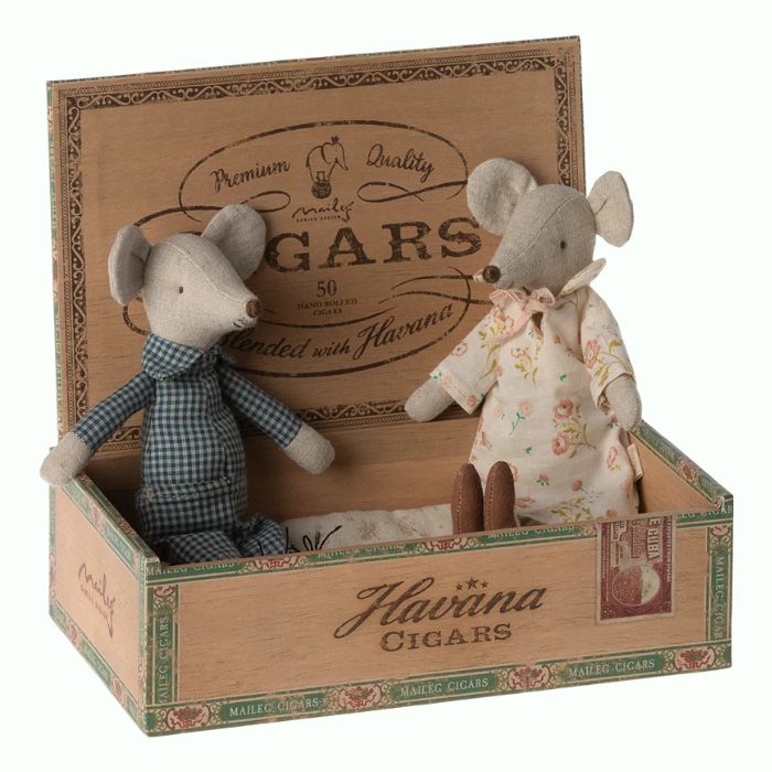 Maileg peles vecmāmiņa un vectētiņš cigāru kastē
