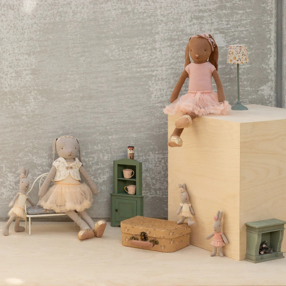 Maileg zaķis talismans ir burvīgs rotaļu biedrs, kas iekaros jebkura mazā deju mīļotāja sirdi.