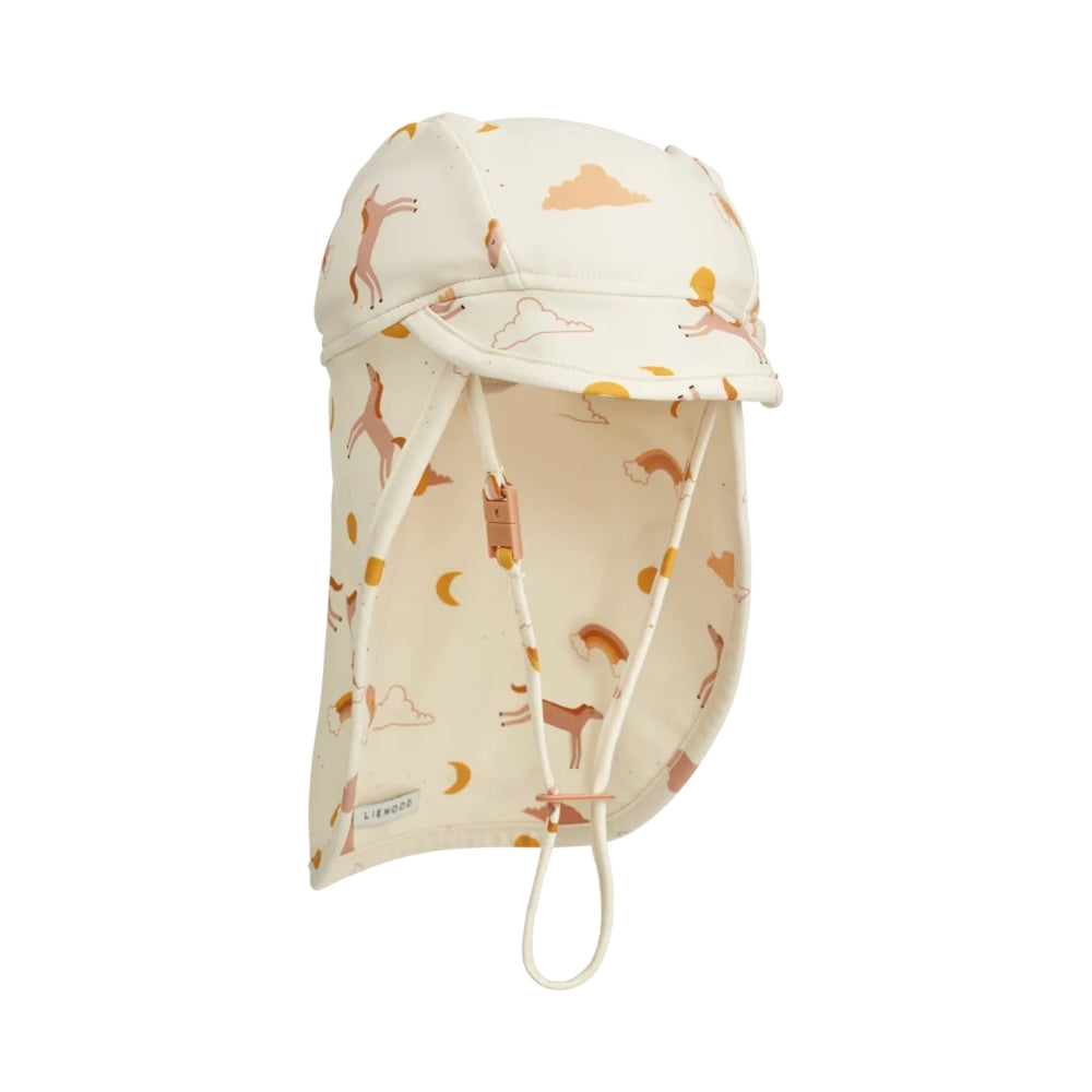 Liewood cepurei ir zoda siksna ar mīkstu silikona aizsargu un drošu ātri atveramu sprādzi.