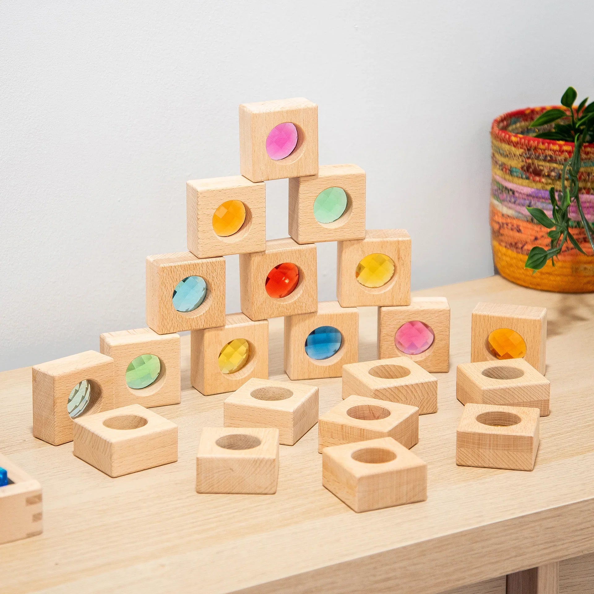 Tie ir izgatavoti no izturīgas dižskābarža koksnes un ir piemēroti mazuļu rociņām, lai bērns varētu viegli salikt, šķirot un veidot savas konstrukcijas.