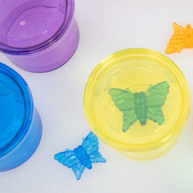 - Komplektā ietilpst: 4 dažādi kukaiņu dizaini 6 krāsās ērti uzglabājamā burciņā.