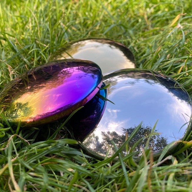 Izturīgi izgatavoti TickiT zīmola nerūsējošā tērauda sensoriskie diski zelta, sudraba un varavīksnes krāsā.