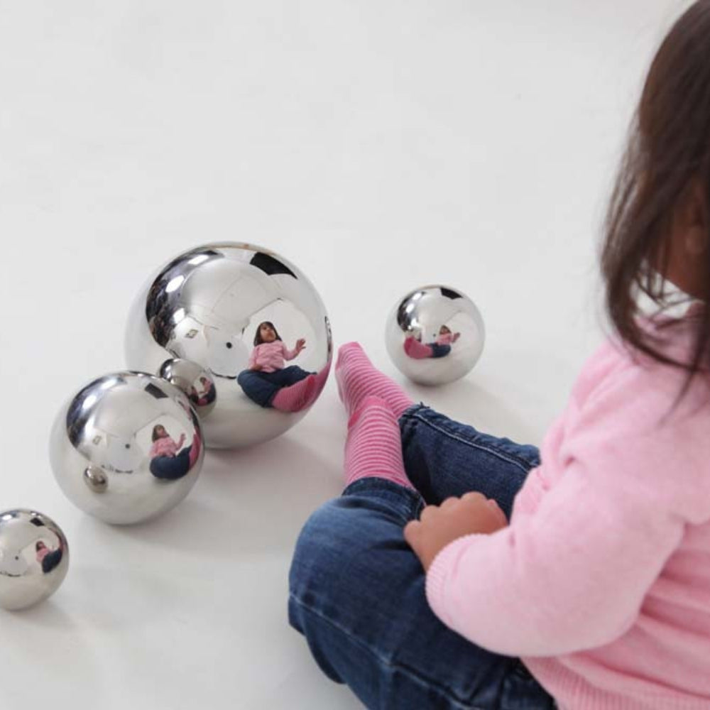 Aizraujošā atspoguļojuma efekts, kas izkropļo attēlu kā zivsaules objektīvs, sniedz bērniem intriģējošu attēlu par sevi un apkārtējo vidi.
