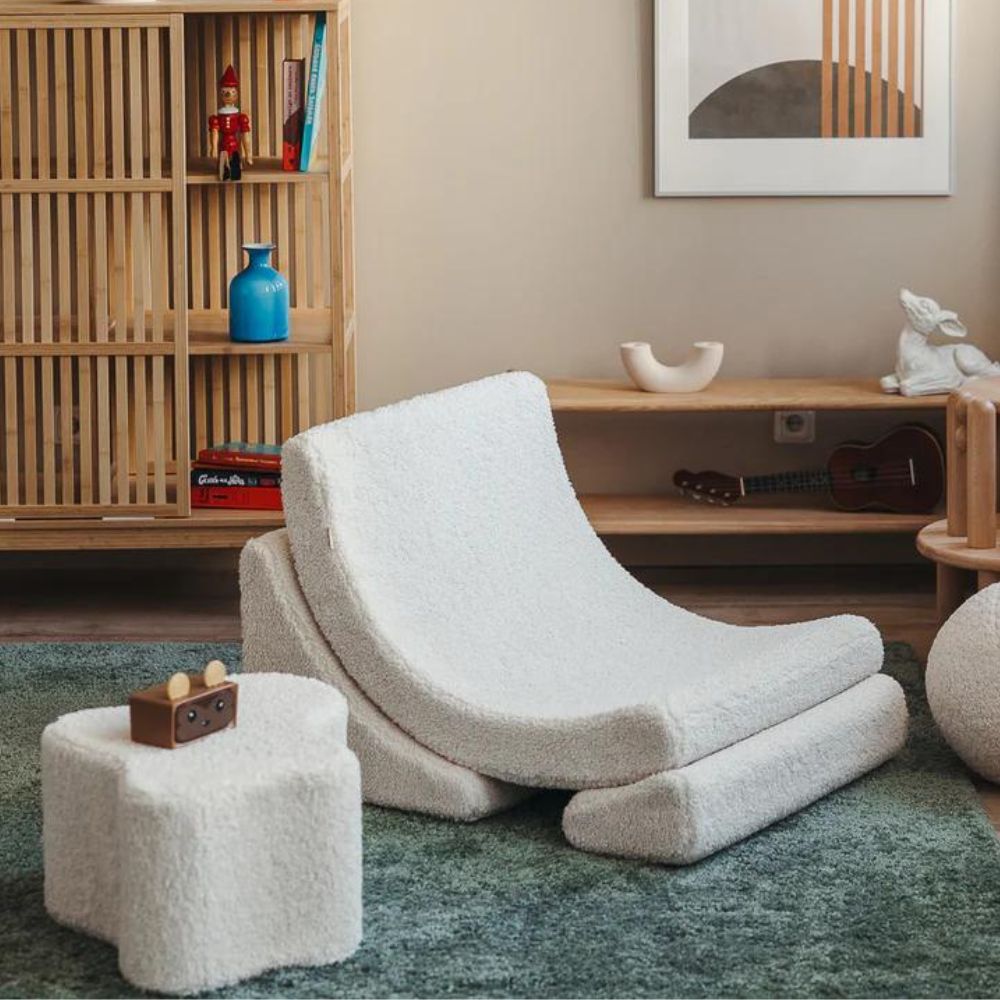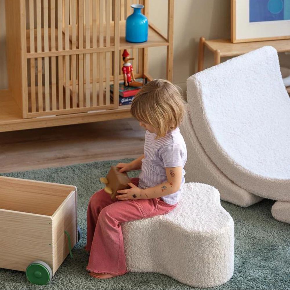 Uzlabojiet sava bērna atpūtas komfortu ar Wigiwama krēmkrāsas balto mākonīša pufu.
