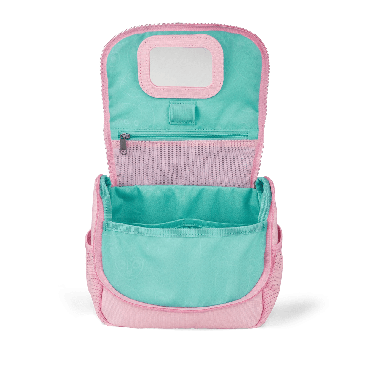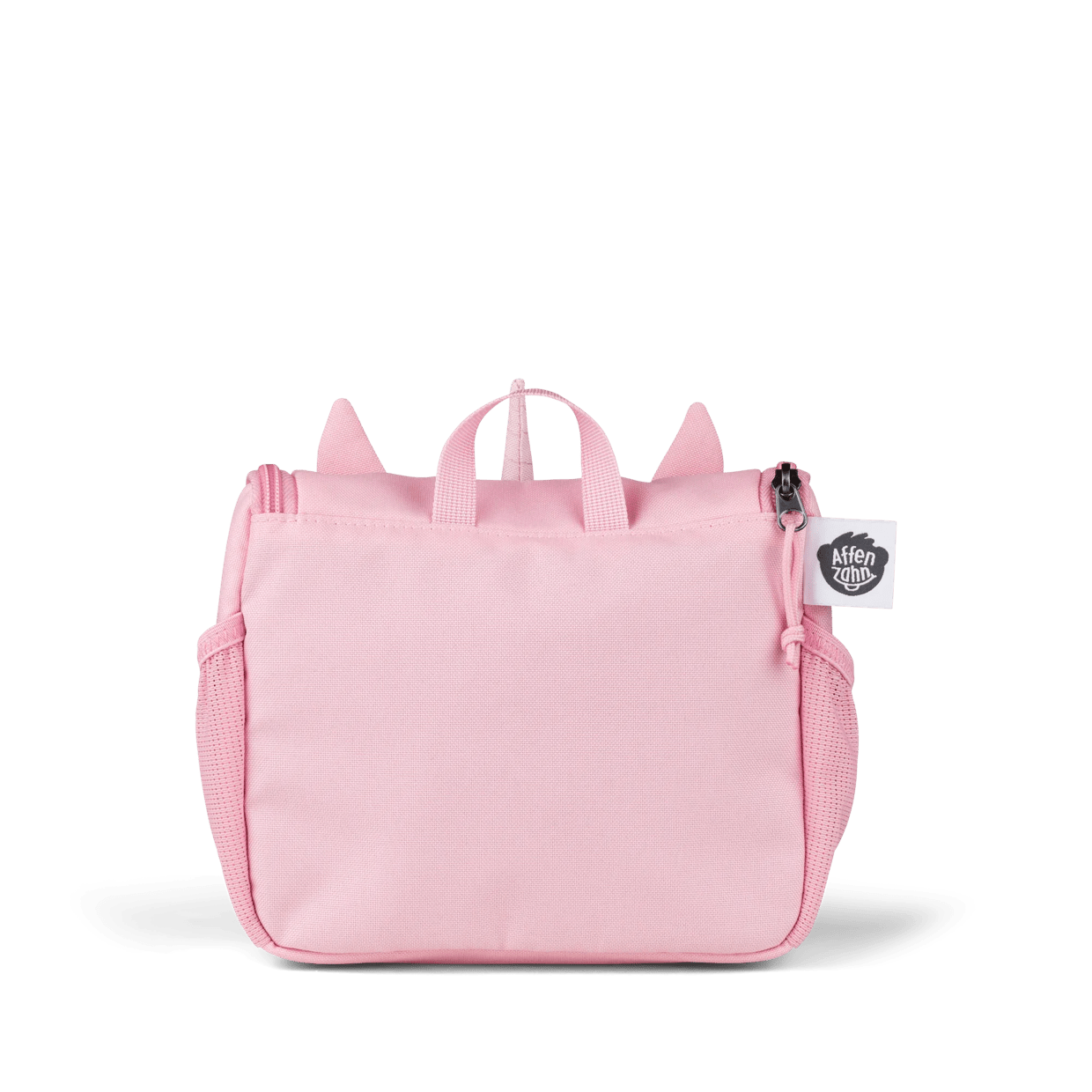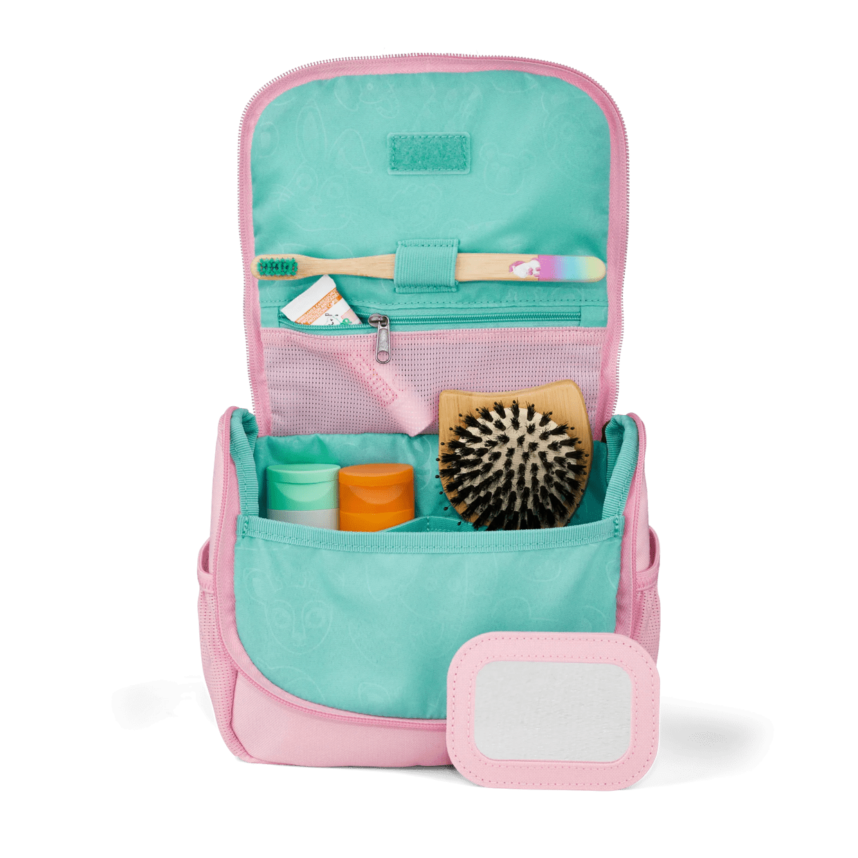 Gan divas elastīgās tīklveida sānu kabatas, gan funkcionālā cilpa piederumiem padara bērnu kosmētikas somiņu ideāli piemērotu brīvdienām, bērnudārzam vai nedēļas nogales ceļojumiem.