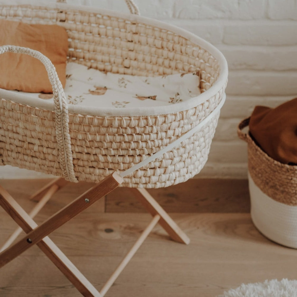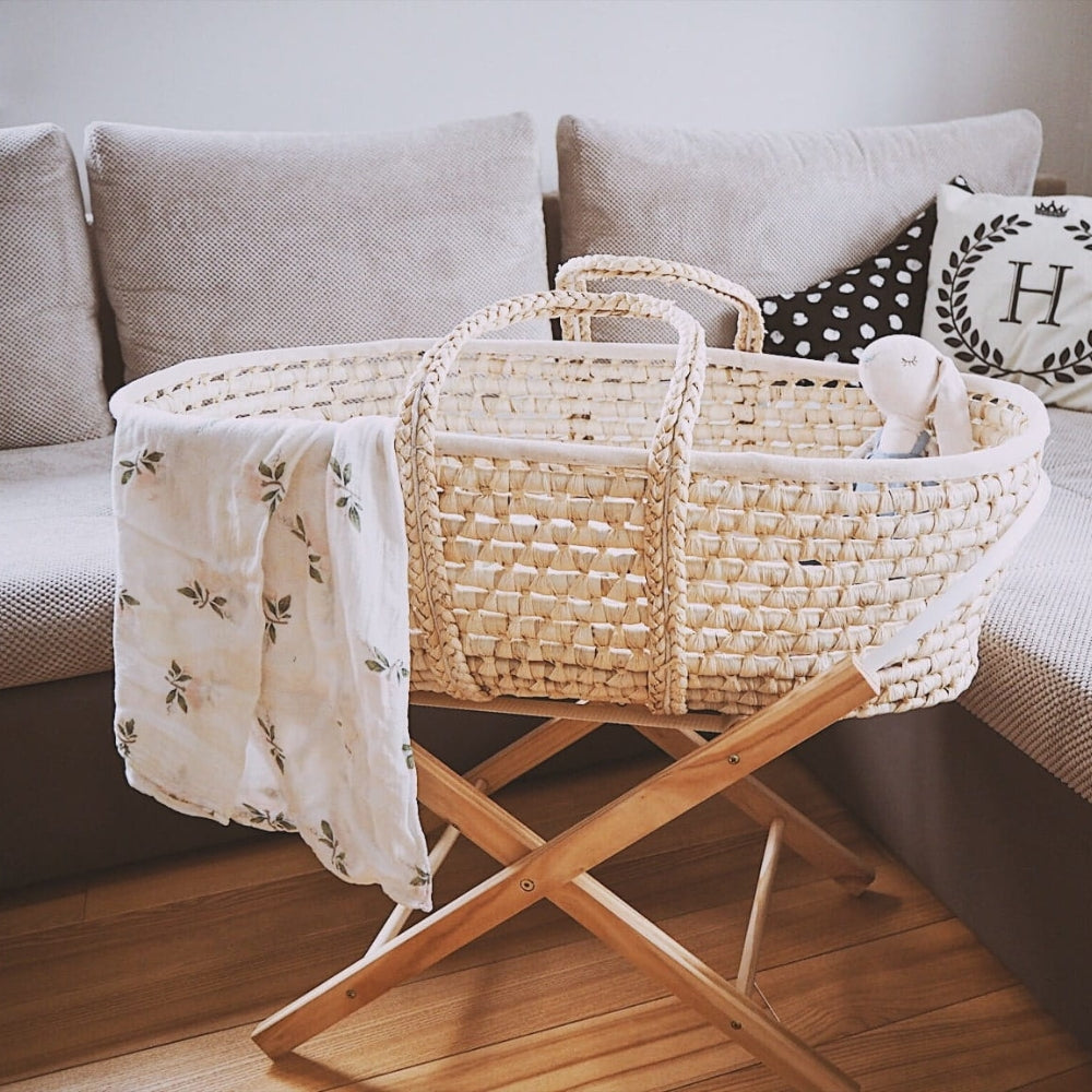 Ahojbaby ražotais Moses grozs ar elegantu statīvu.