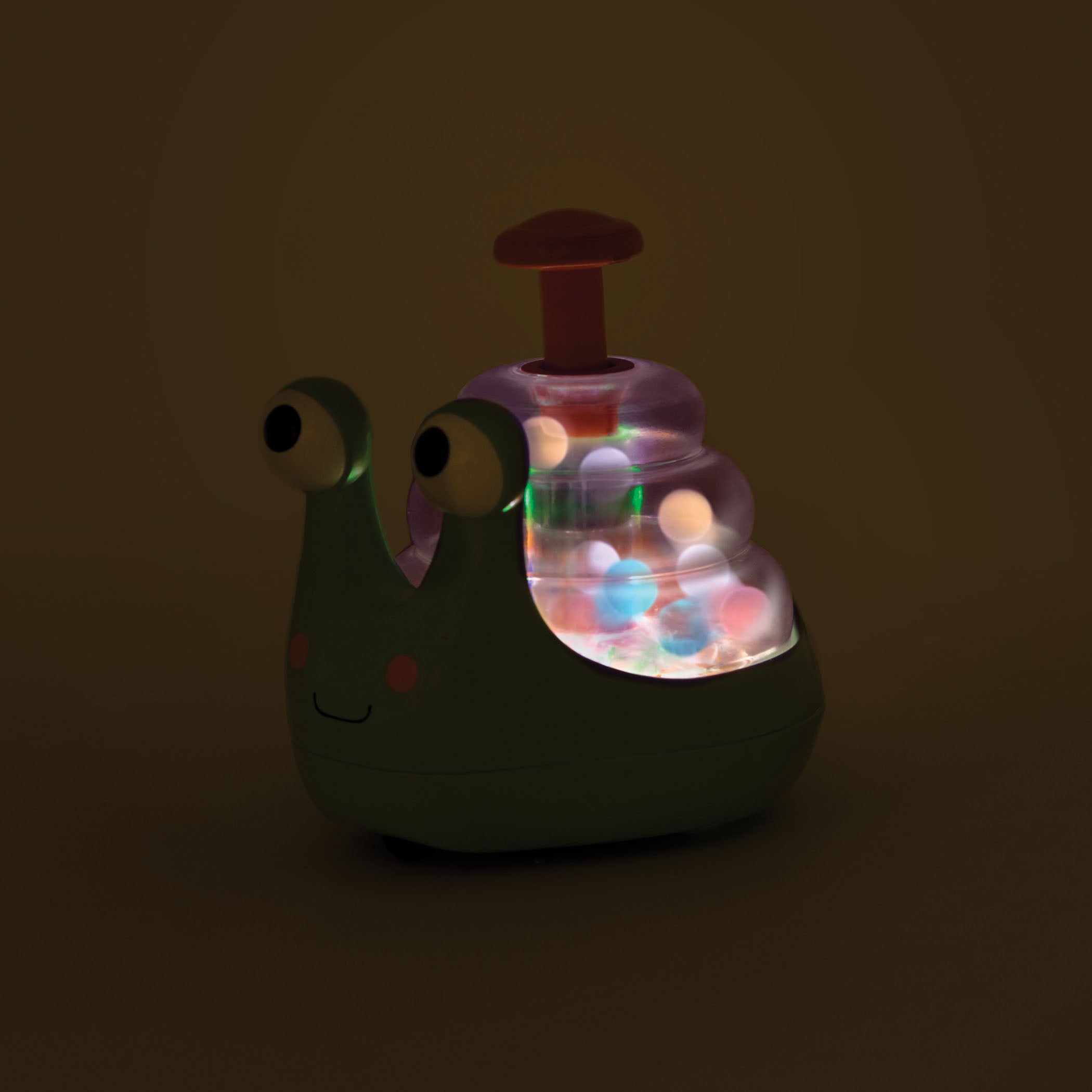 Kad mazulis nospiež gliemezi, bumbiņas tās čaulā sāk kustēties, kas uz ilgu laiku piesaistīs un noturēs bērna uzmanību.