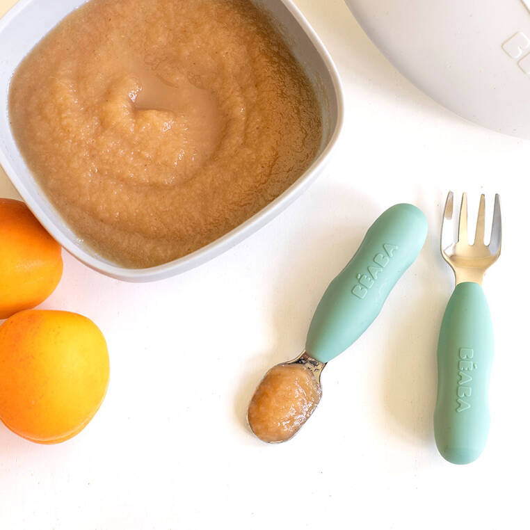Beaba bērnu galda piederumi ir izgatavoti no nerūsējošā tērauda, bet to rokturi ir no elastīgas silikona, kas ir pilnīgi droša mazulim.