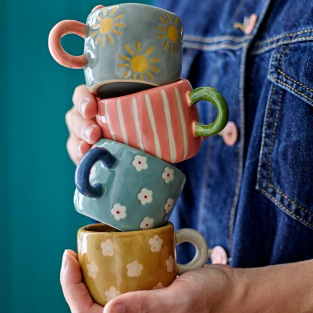 Nini komplekts ir Bloomingville krūzes, kas uzreiz piešķir galdam jautru noskaņu un padara pat vienkāršu tējas galdu "svētku" izskatu. Katrai krūzītei ir ar rokām apgleznots dizains dažādās krāsās, padarot krūzītes vieglas, rotaļīgas un ļoti "mājīgas" - ideāli piemērotas ģimenes brokastīm vai pēcpusdienas tējai.