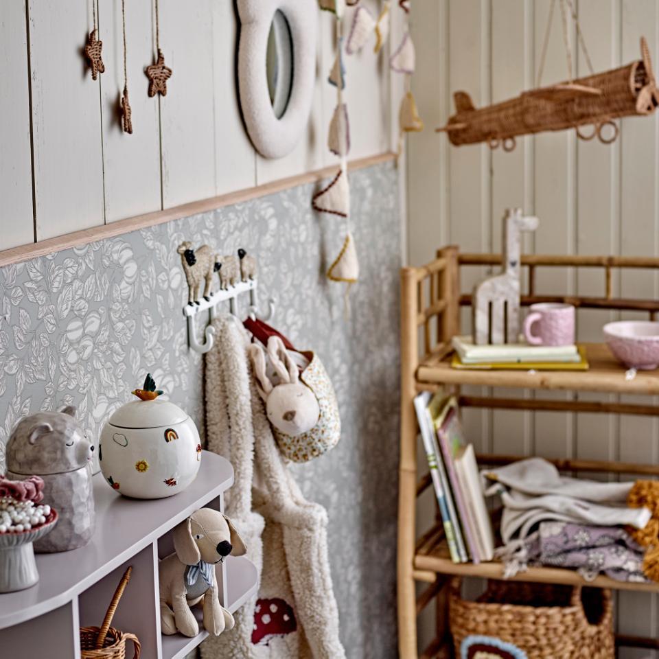 Bloomingville MINI burvīgais Agnes konteiners ar vāku ir pievilcīgs papildinājums jebkuras bērna istabas interjeram ar savu unikālo dizainu.