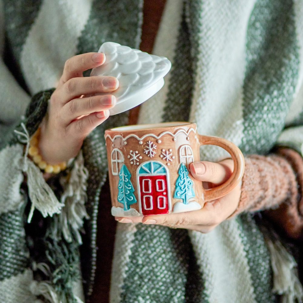 Ginnie modelis ar burvīgo piparkūku namiņa dizainu un praktisko vāciņu ilgāk saglabās jūsu kafiju, tēju vai karsto šokolādi siltu.