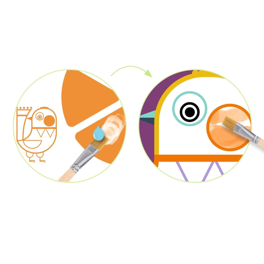 Zīmols Djeco atkal pierāda, ka prot apvienot jautrību ar radošo attīstību. Komplektā ir četras ilustrācijas, kurās attēloti jautri dzīvnieki, kam piešķirtas paletes ar krāsām.