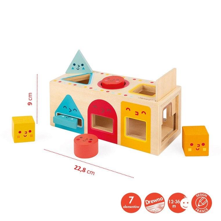 Franču zīmola Janod ģeometrisko figūru šķirotājs mazulim palīdz attīstīt daudzas svarīgas prasmes.