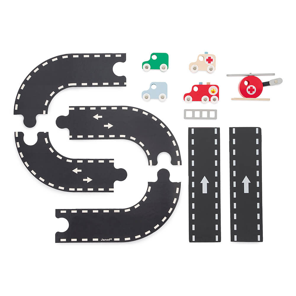 Komplektā ietilpst trīsstāvu ugunsdzēsēju stacija ar 2 automašīnām, ugunsdzēsēju automašīnu, ātro palīdzības automašīnu un helikopteru.