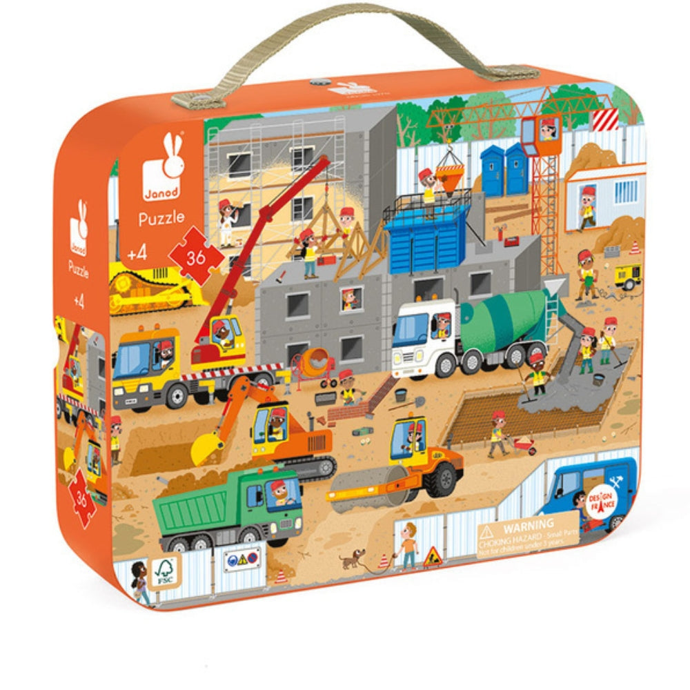 Janod Puzle čemodānā Celtniecības laukums 36 gabaliņi