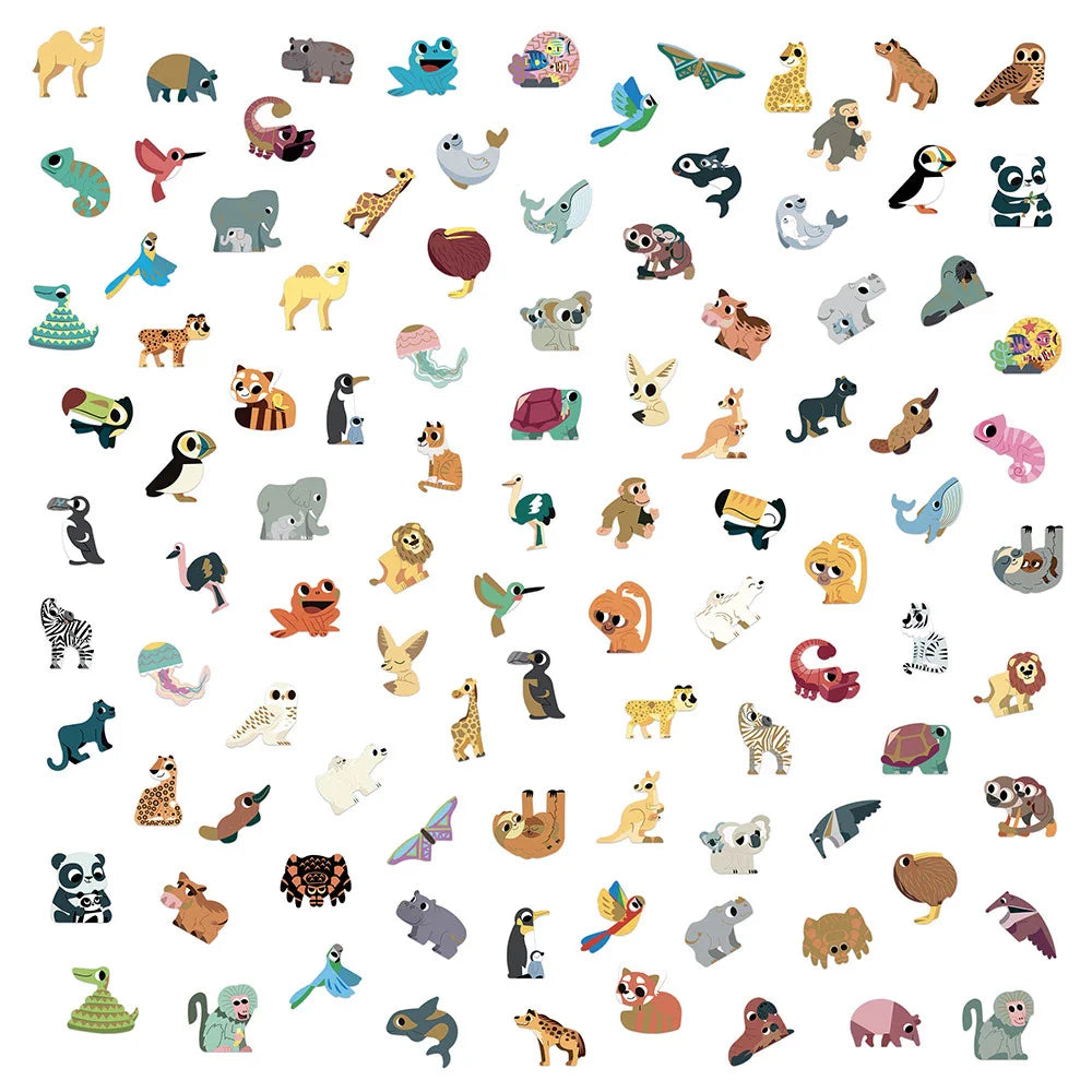 - Komplekta saturs: 100 uzlīmes ar eksotiskajiem dzīvniekiem panda formas iepakojumā
