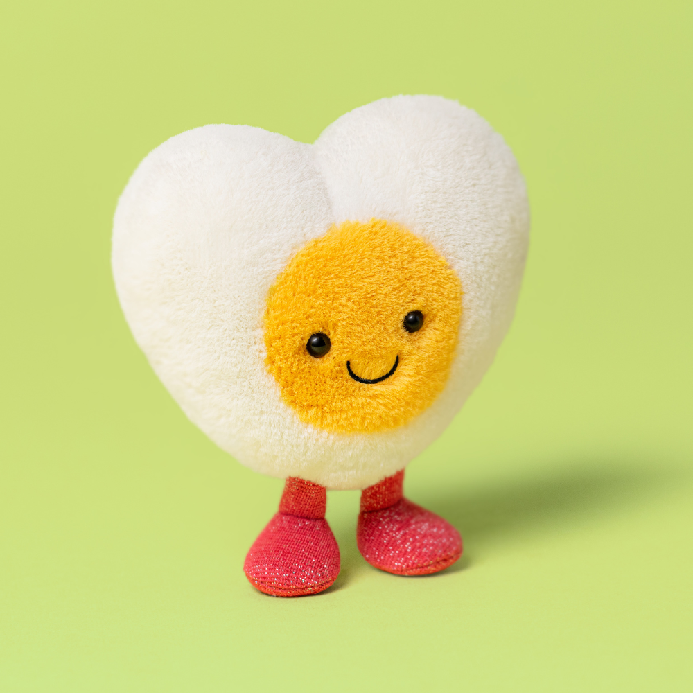 Amuseables Heart Egg no Jellycat ir burvīgs talismans, kas izskatās kā mazs sirsniņš un kam ir patiesi "zeltains" raksturs.